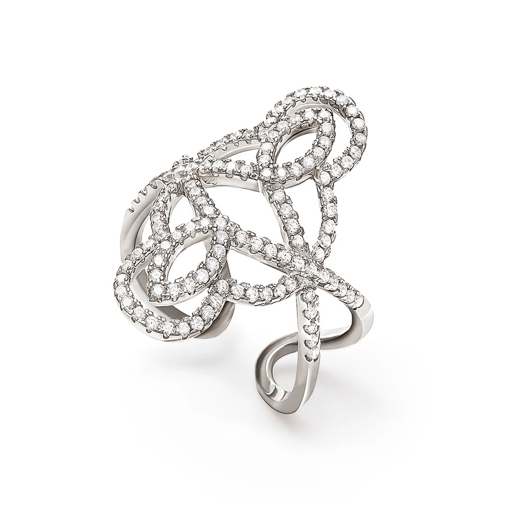 Ολοκληρώστε τις πρωινές ή βραδινές σας εμφανίσεις με το εντυπωσιακό ασημένιο δαχτυλίδι από τη συλλογή FASHIONABLY SILVER TEMPTATION. Με ασταφτερές κρυστάλλινες πέτρες που τραβάει τα βλέμματα θα χαρίσει αξεπέραστη λάμψη στο στιλ σας.