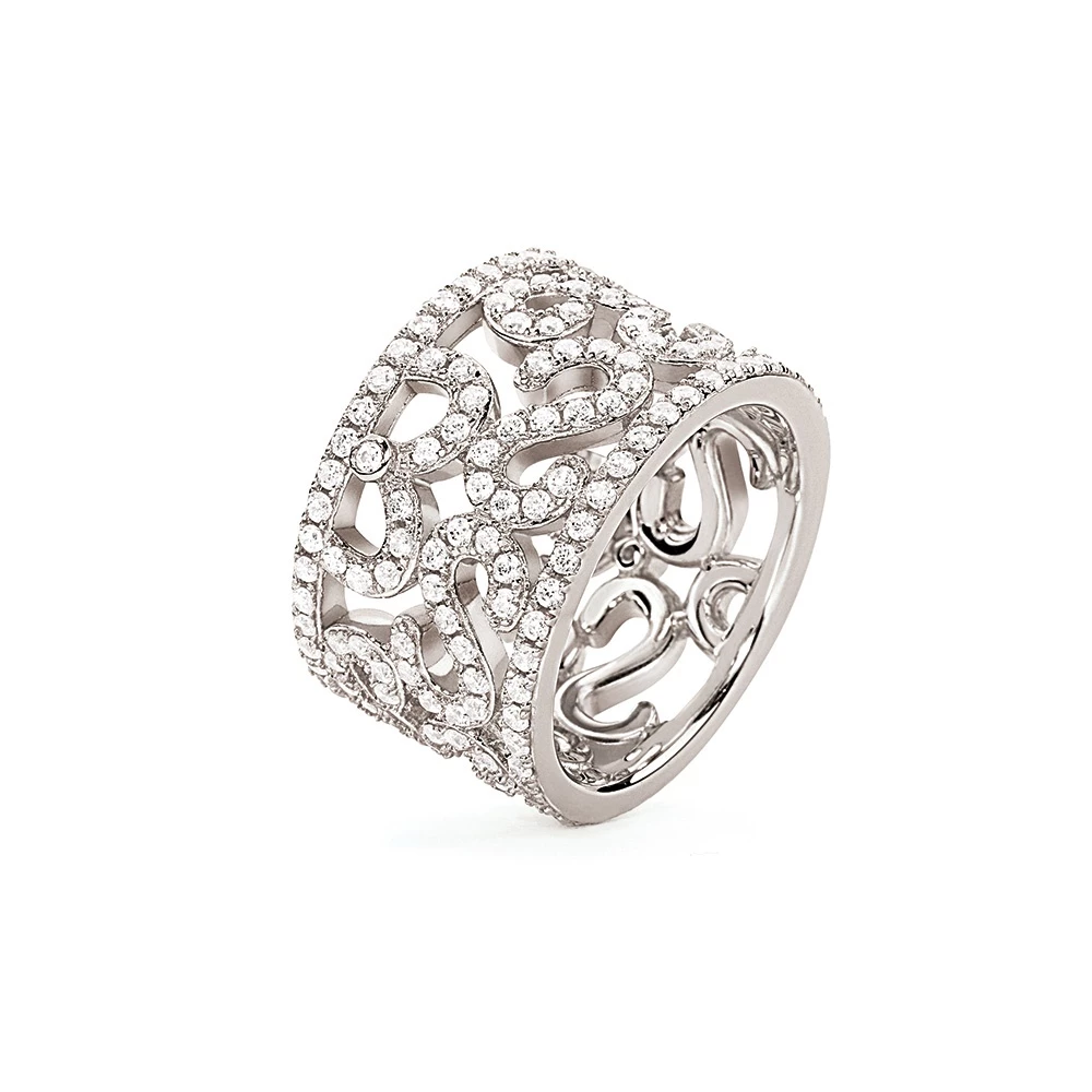 Ασημένιο 925 φαρδύ δαχτυλίδι με λευκές cubic zirconia πέτρες από την συλλογή Fashionably Silver Temptation. Ένα σχέδιο τόσο διαχρονικό αλλά και τόσο εντυπωσιακό.