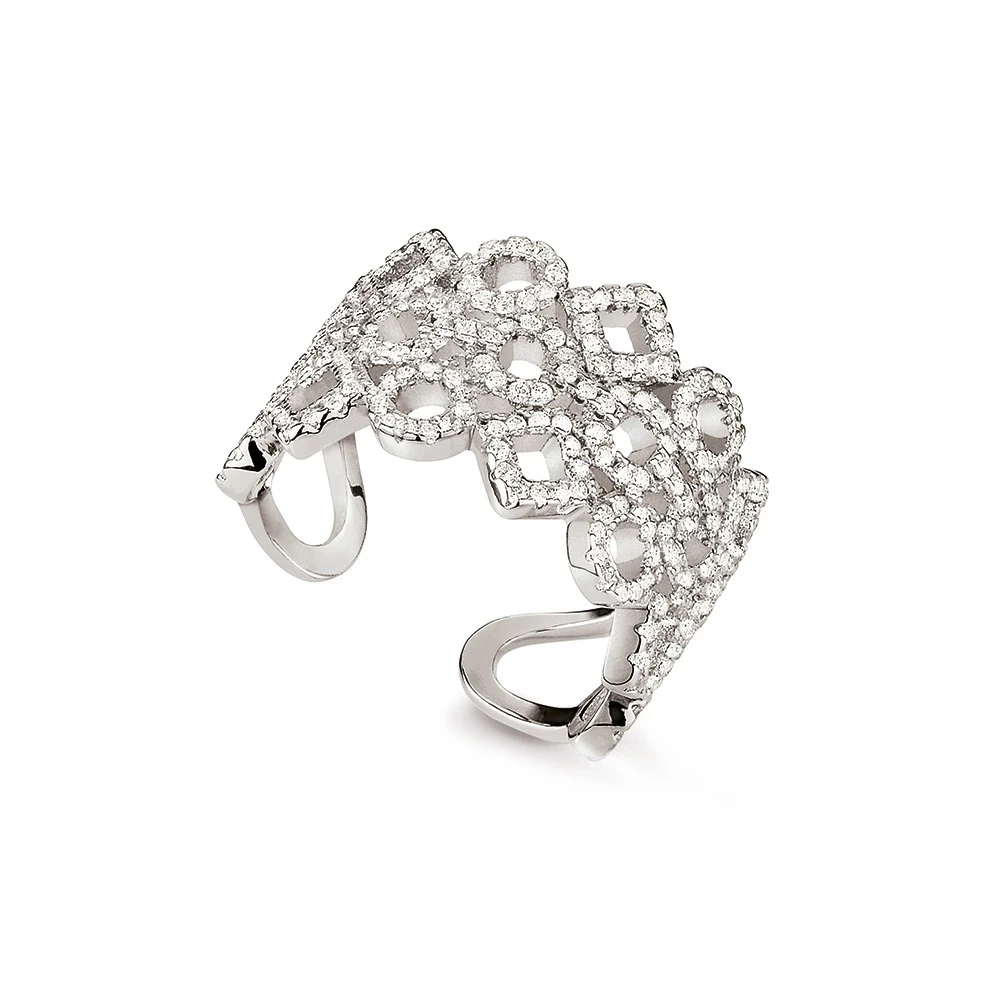 Ασημένιο 925 επιροδιωμένο δαχτυλίδι, με λευκές κρυστάλλινες πέτρες από την συλλογή FASHIONABLY SILVER TEMPTATION .Με άνοιγμα στην κάτω πλευρά για εύκολη προσαρμογή.