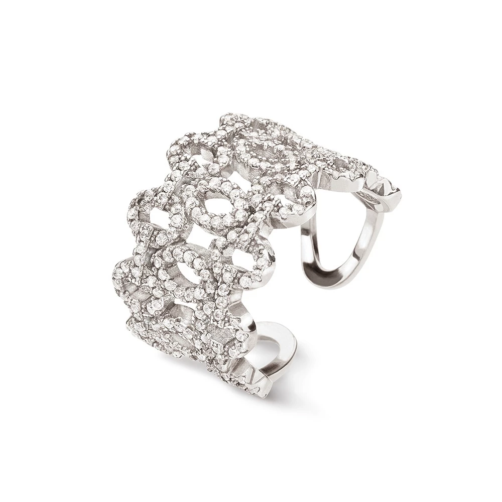 Ολοκληρώστε τις πρωινές ή βραδινές σας εμφανίσεις με το εντυπωσιακό ασημένιο δαχτυλίδι από τη συλλογή FASHIONABLY SILVER TEMPTATION. Με ασταφτερές κρυστάλλινες πέτρες που τραβάει τα βλέμματα θα χαρίσει αξεπέραστη λάμψη στο στιλ σας.