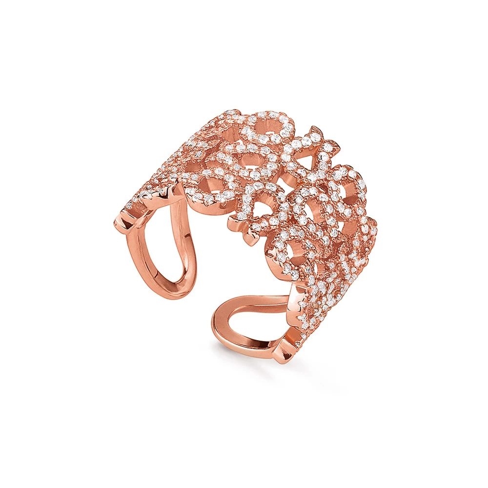 Ασημένιο δαχτυλίδι 925anddeg; με επιμετάλλωση σε ροζ χρυσό και λευκές κρυστάλλινες πέτρες, από την συλλογή FASHIONABLY SILVER TEMPTATION . Ένα δαχτυλίδι που θα χαρίσει μοναδική λάμψη σε κάθε σας εμφάνιση.
