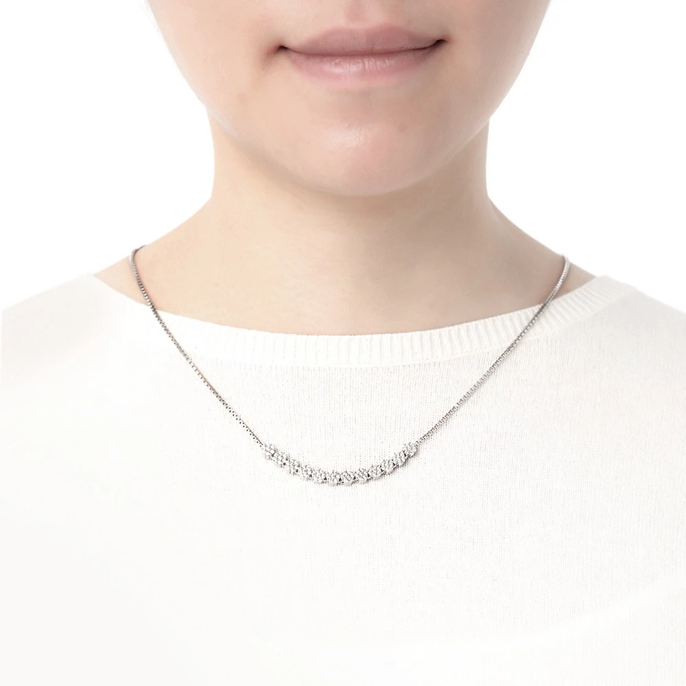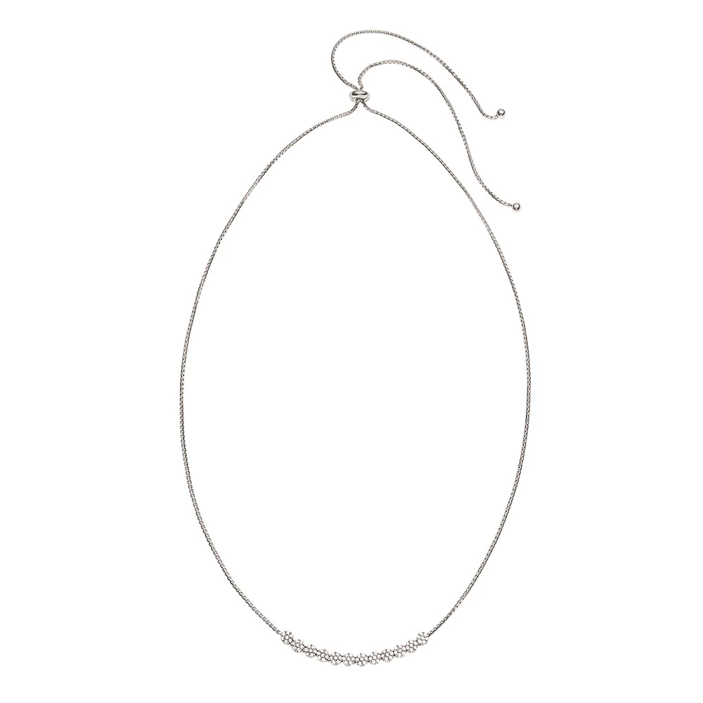 Κοντό ασημένιο 925° επιροδιωμένο κολιέ με λευκές κρυστάλλινες πέτρες, από την συλλογή Fashinably Silver Stories. Με ρυθμιζόμενη αλυσίδα για να προσαρμόζεις το μήκος του ανάλογα με το ντύσιμό σου και το στυλ που θέλεις να δώσεις.