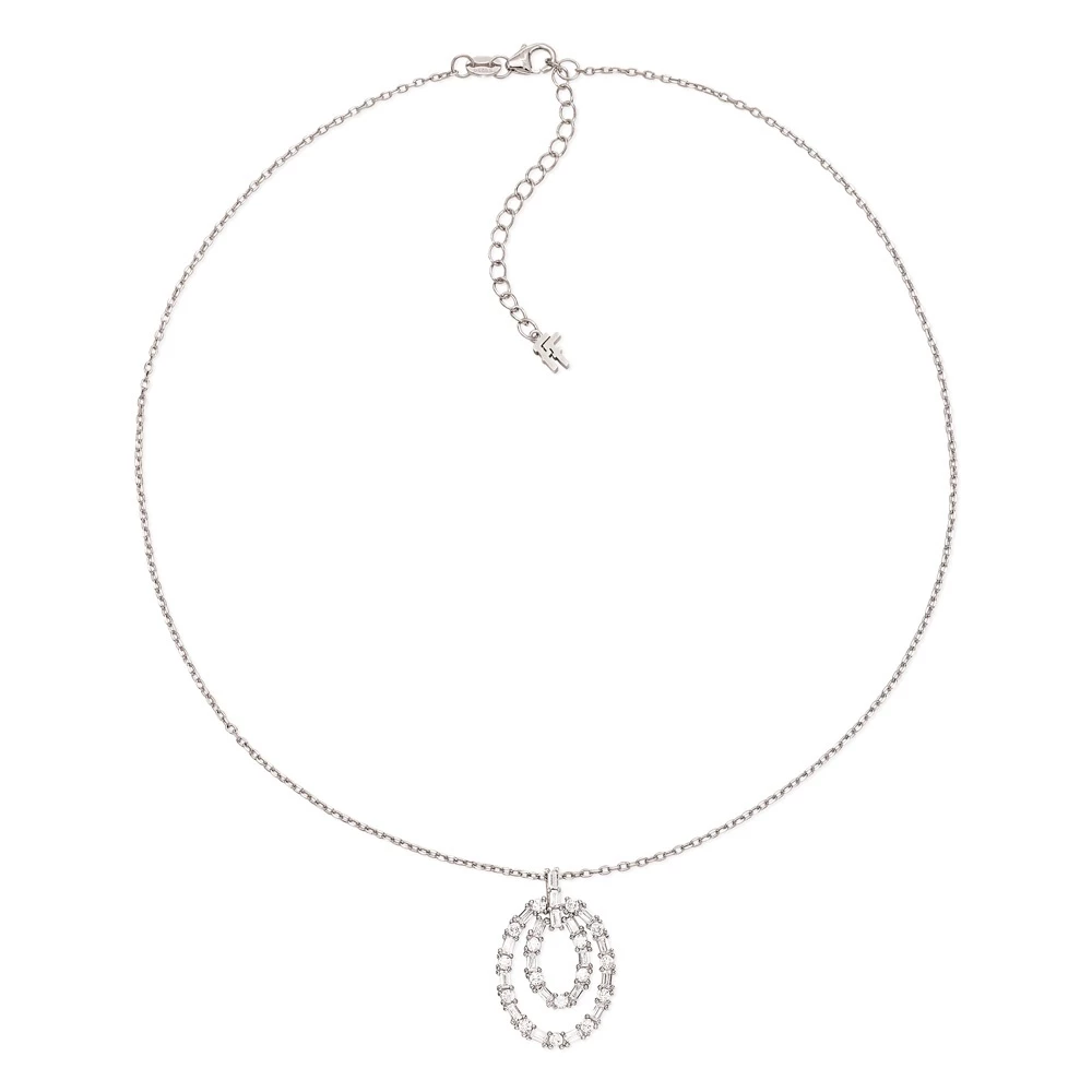 Κοντό ασημένιο 925° επιροδιωμένο κολιέ σε οβάλ σχήμα με λευκές κρυστάλλινες πέτρες από την συλλογή Fashionably Silver Essentials. ‘Ένα υπέροχα δουλεμένο κολιέ για να το φοράς εύκολα από το πρωί ως το βράδυ.