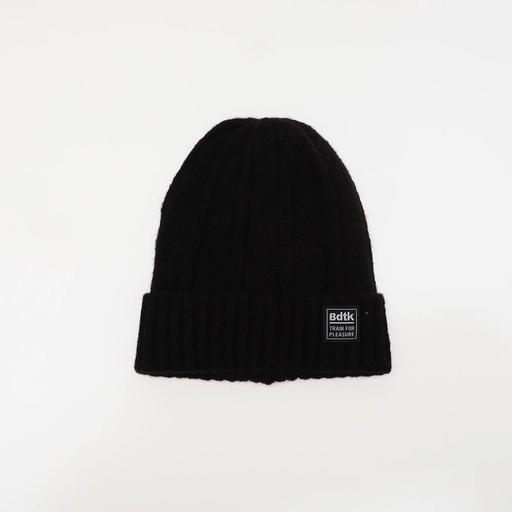 Unisex πλεκτό σκουφί BODYTALK σε μαύρο χρώμα. Από ζεστή πλέξη με rib rever στη βάση και κεντημένη ετικέτα με το λογότυπο.