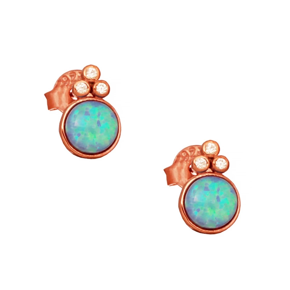 Γυναικεία καρφωτά σκουλαρίκια JEWELTUDE από ασήμι 925 με επιχρύσωση 18k. Mονόπετρα motif από cabochon οπάλιο και μικρά λευκά ζιργκόν.