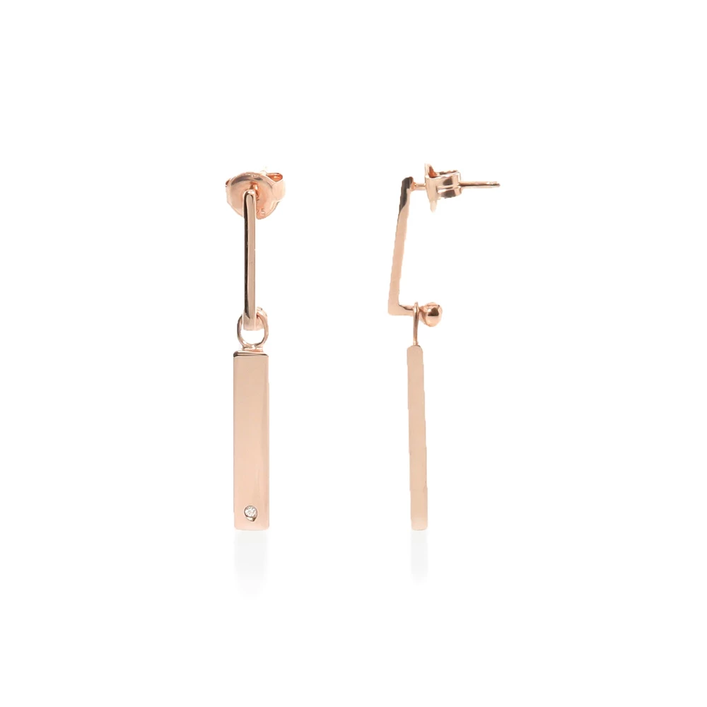 Γυναικεία ασημένια κρεμαστά σκουλαρίκια FOLLI FOLLIE από τη συλλογή PLATE με επιχρύσωση 18K. Αφαιρούμενο motif σε σχήμα ράβδου, με διακοσμητικό στρας, για να τα προσαρμόστε τα στο στιλ που σας ταιριάζει.