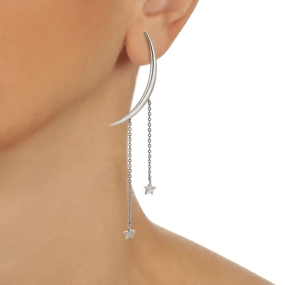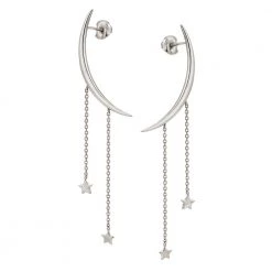 Γυναικεία μακριά σκουλαρίκια FOLLI FOLLIE της συλλογής Wishing On, από ασήμι 925°. Ένα μεγάλο μοτίφ σε σχήμα φεγγαριού και δύο λεπτές αλυσίδες με μικρά κρεμαστά μοτίφ σε σχήμα αστεριών. Διαθέτουν κούμπωμα καρφακι. Μία statement επιλογή που θα απογειώσει τις εμφανίσεις σου.