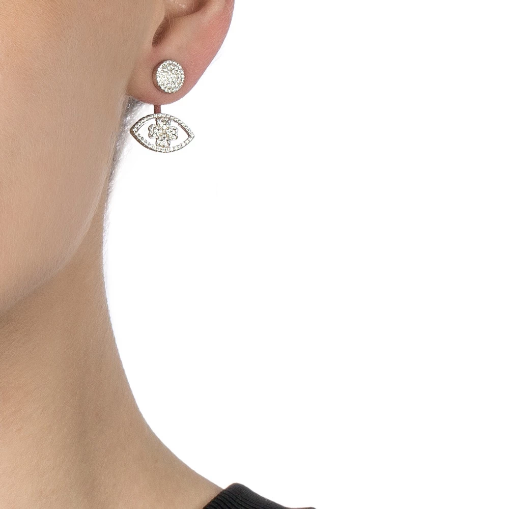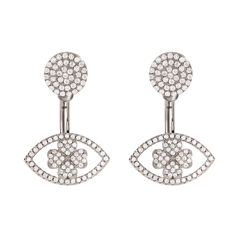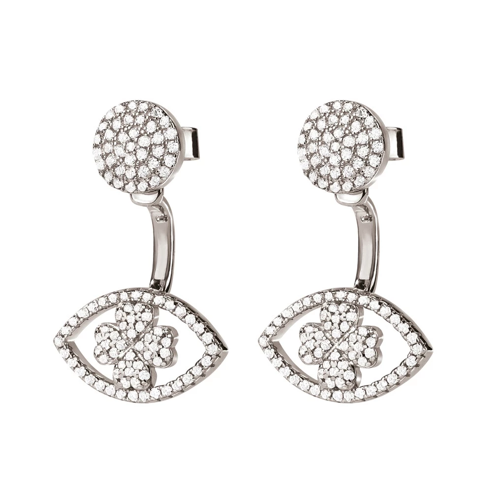 Γυναικεία σκουλαρίκια FOLLI FOLLIE HEART4HEART MATI από ασήμι 925°. Σχέδιο με τις χαρακτηριστικές τέσσερεις καρδιές μέσα σε περίγραμμα μάτι διακοσμημένα με πέτρες ζιργκόν και μικρή bowl που αφαιρείται και φοριούνται και μεμονωμένα. Διαθέτουν κούμπωμα καρφάκι. Ένα ιδιαίτερο κόσμημα, που θα ολοκληρωσει κάθε σας εμφάνιση.
