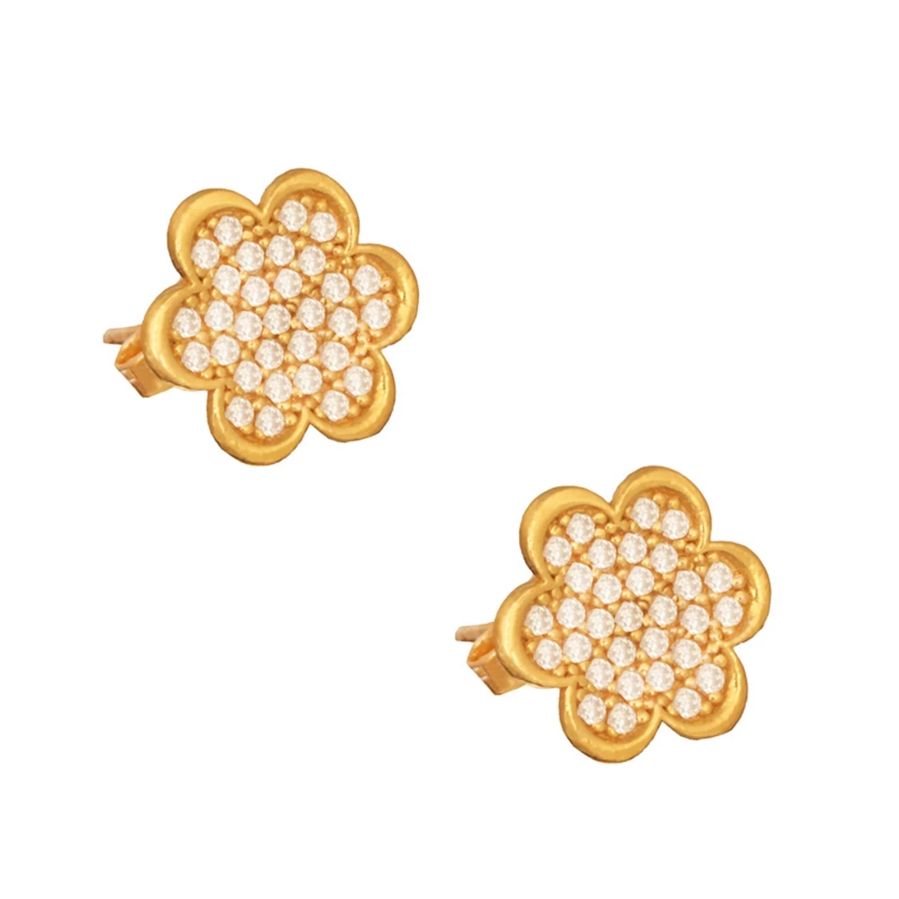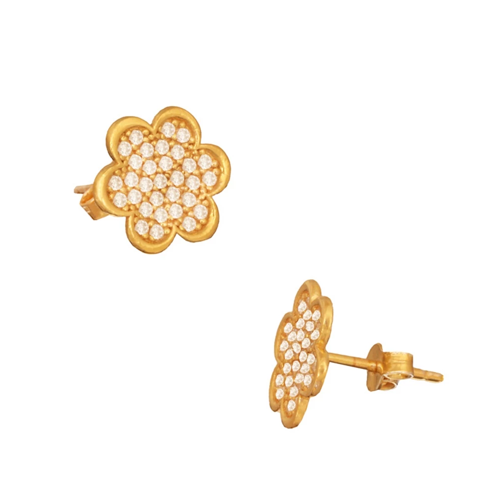Γυναικεία ασημένια 925 επίχρυσα καρφωτά σκουλαρίκια Λουλούδια Μαργαρίτες. Στολισμένα με pave καρφωμένα λευκά ζιργκόν, αντανακλούν απαράμιλλη λάμψη απο κάθε γωνία. Κομψά και ντελικάτα, θα μεταμορφώσουν κάθε ρομαντικό σύνολο. Το μέγεθος τους είναι ιδανικό για εμφανίσεις απο το πρωί ως το βράδυ. Ενα θηλυκό ζευγάρι που θα φορέσετε διαχρονικά. Ενα προσωπικό δώρο που θα χαρίσει χαμόγελα.