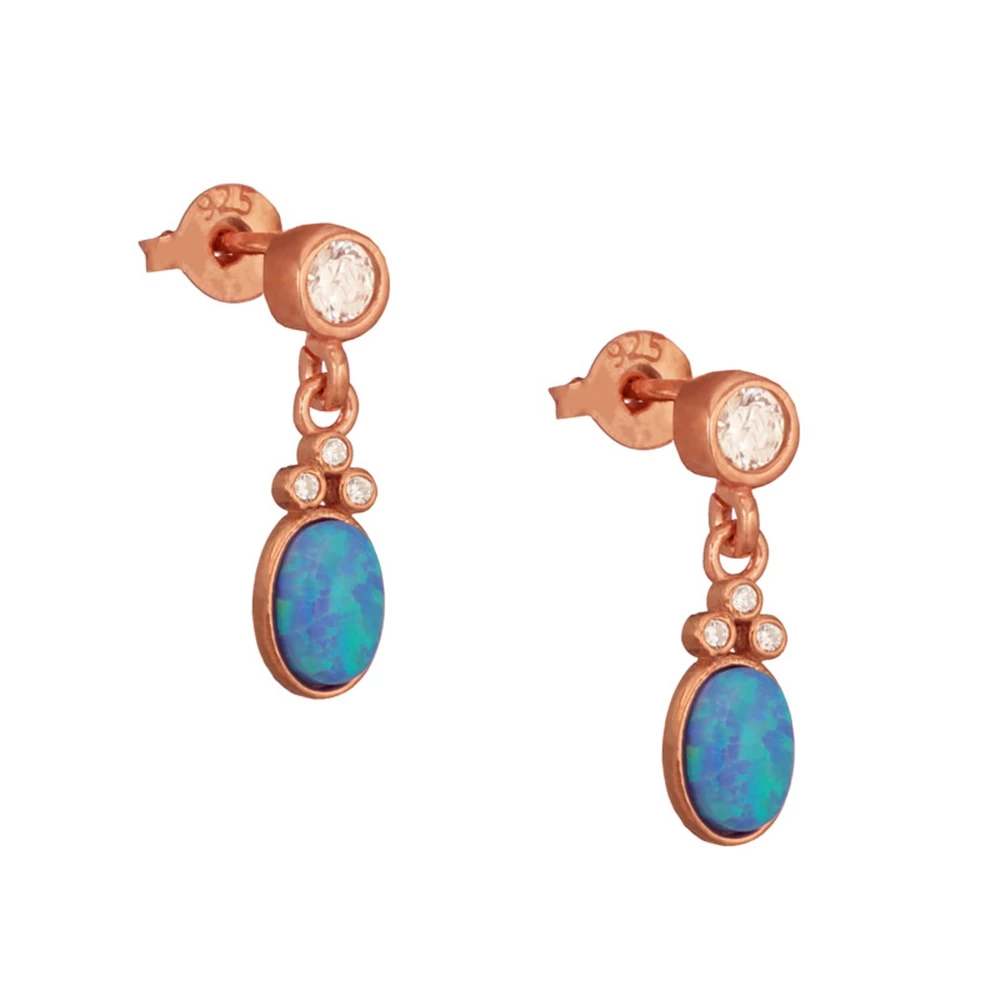 Γυναικεία σκουλαρίκια JEWELTUDE από ασήμι 925 με ροζ επιχρύσωση 18k. Διαθέτουν κούμπωμα καρφάκι και μονόπετρα motif με τιρκουάζ κρεμαστές πέτρες οβάλ κοπής από Οπάλιο. Θα υπογραμίσει με στύλ κάθε σας σύνολο.