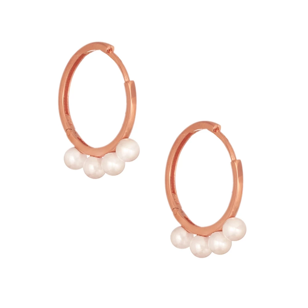 Γυναικεία σκουλαρίκια JEWELTUDE από ασήμι 925 με ροζ επιχρύσωση 14k. Κρίκοι μεσαίου μεγέθους, διακοσμημένοι με λευκά μαργαριτάρια. Ενα υπέροχο κόσμημα που συνδυάζει κομψότητα και διαχρονικότητα.