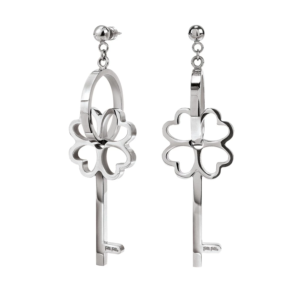 Γυναικεία κρεμαστά σκουλαρίκια FOLLI FOLLIE ON KEY από επαργυρωμένο ατσάλι. Με σχέδιο κλειδί και 4Η4 μέσα σε κρίκους. Διαθέτουν κούμπωμα καρφάκι. Ένα κομψό κόσμημα, που θα ολοκληρωσει κάθε σας εμφάνιση.