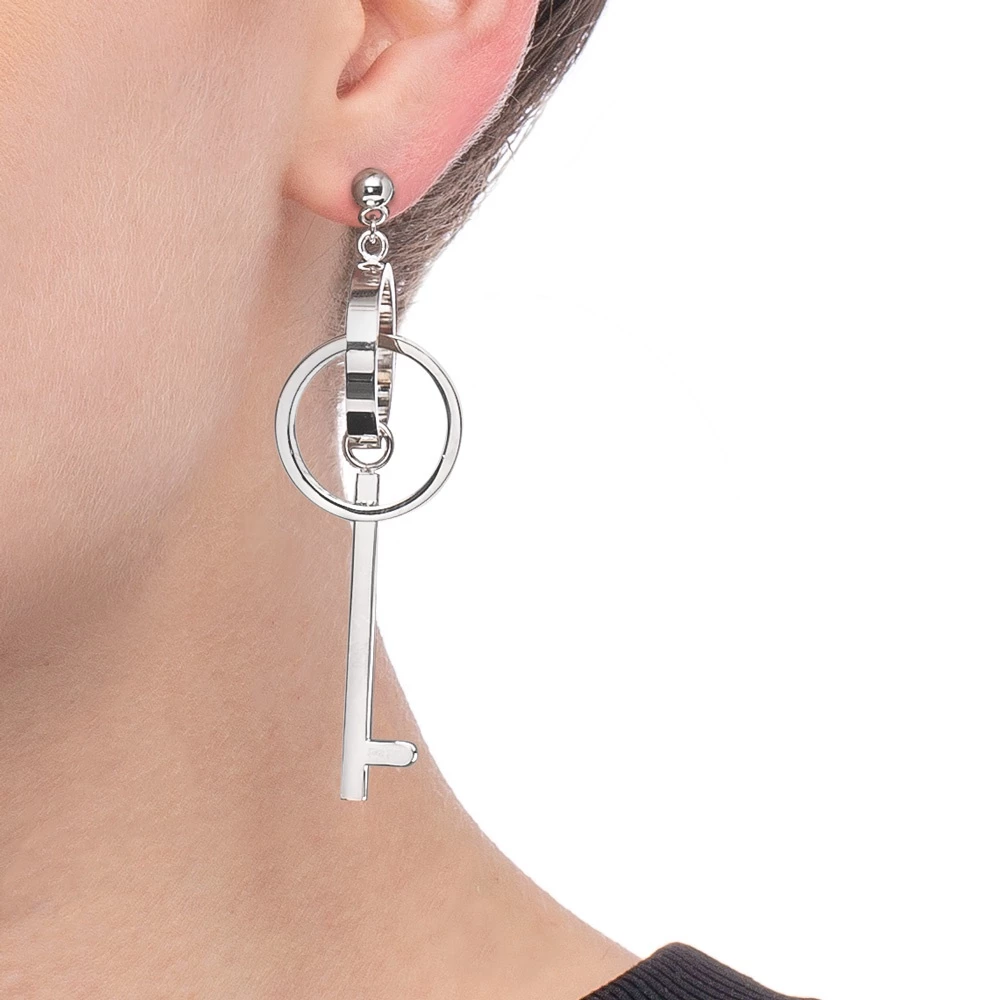 Γυναικεία κρεμαστά σκουλαρίκια FOLLI FOLLIE ON KEY από επαργυρωμένο ατσάλι. Με σχέδιο κλειδί μέσα σε κρίκους. Διαθέτουν κούμπωμα καρφάκι. Ένα κομψό κόσμημα, που θα ολοκληρωσει κάθε σας εμφάνιση.