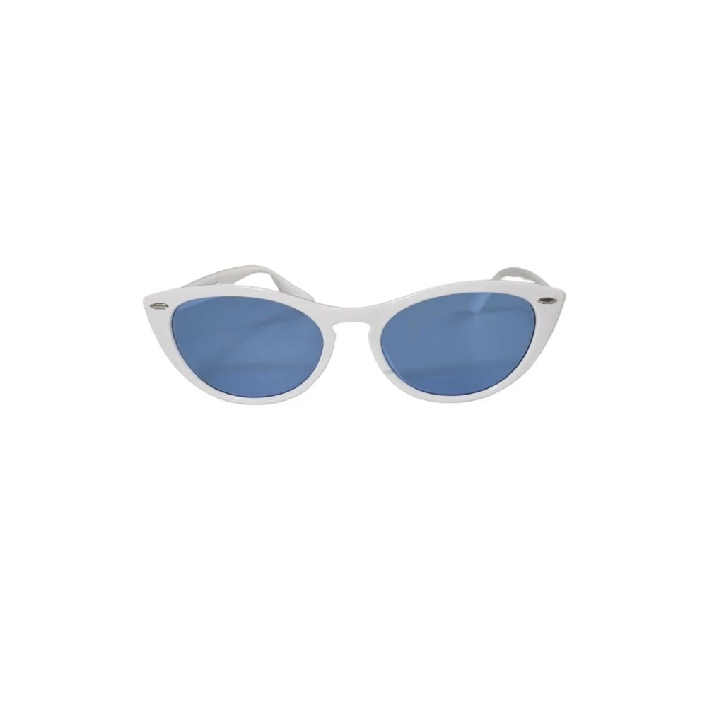 Γυναικεία γυαλιά ηλίου της εταιρίας VQF. Ο σκελετός είναι κοκκάλινος σε λευκό χρώμα. Οι φακοί είναι σε μπλε απόχρωση, με την απαραίτητη προστασία UV.