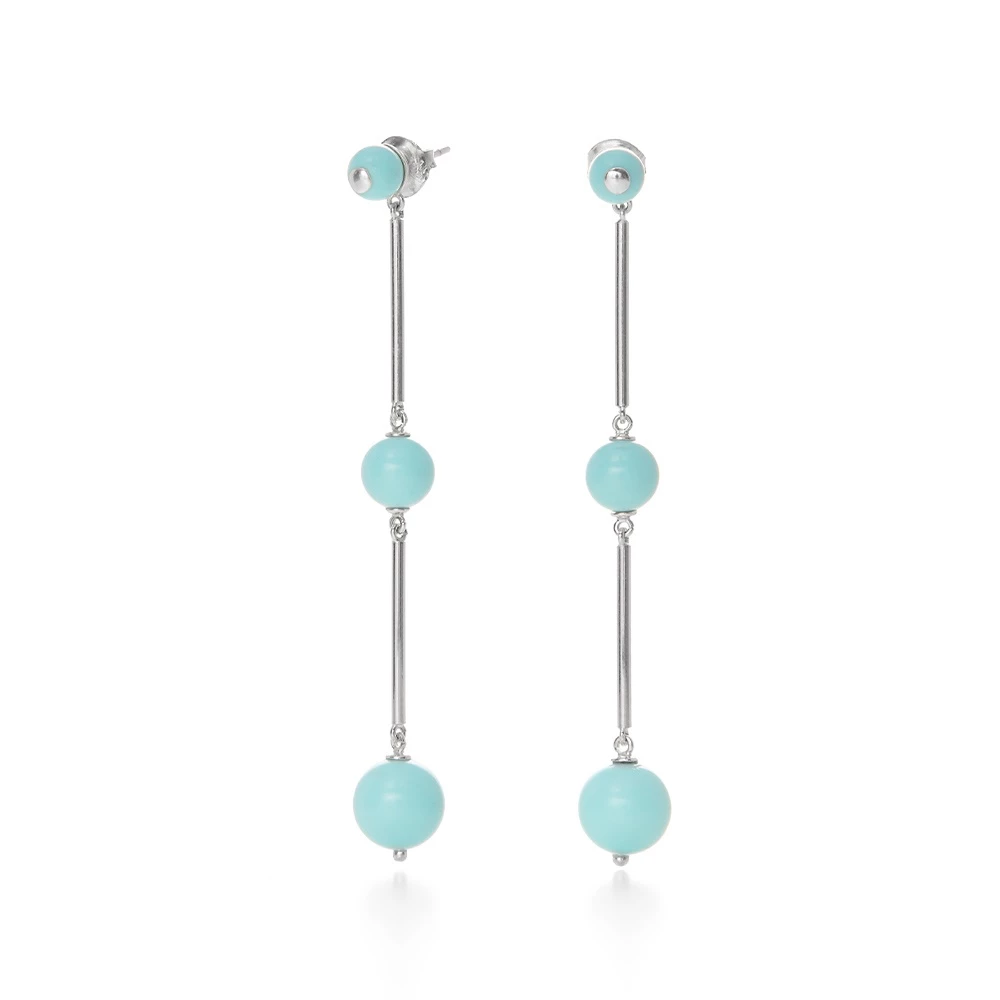 Γυναικεία μακριά σκουλαρίκια FOLLI FOLLIE από ασήμι 925. Λεπτές μπάρες, με τιρκουάζ ακρυλικές σφαίρες σε διάφορα μεγέθη από την συλλογή Close To Sun. Αναβάθμισε το καθημερινό σου look!
