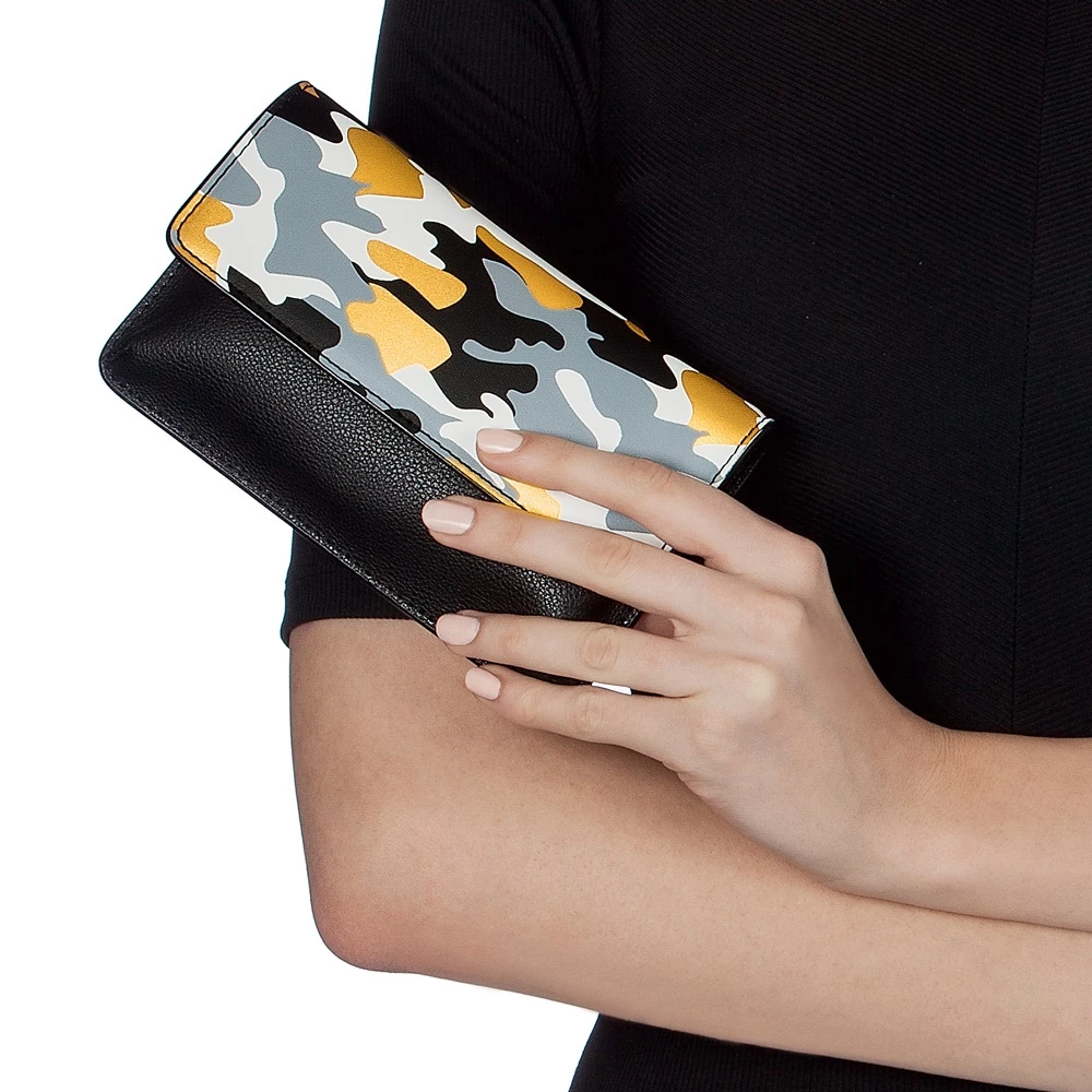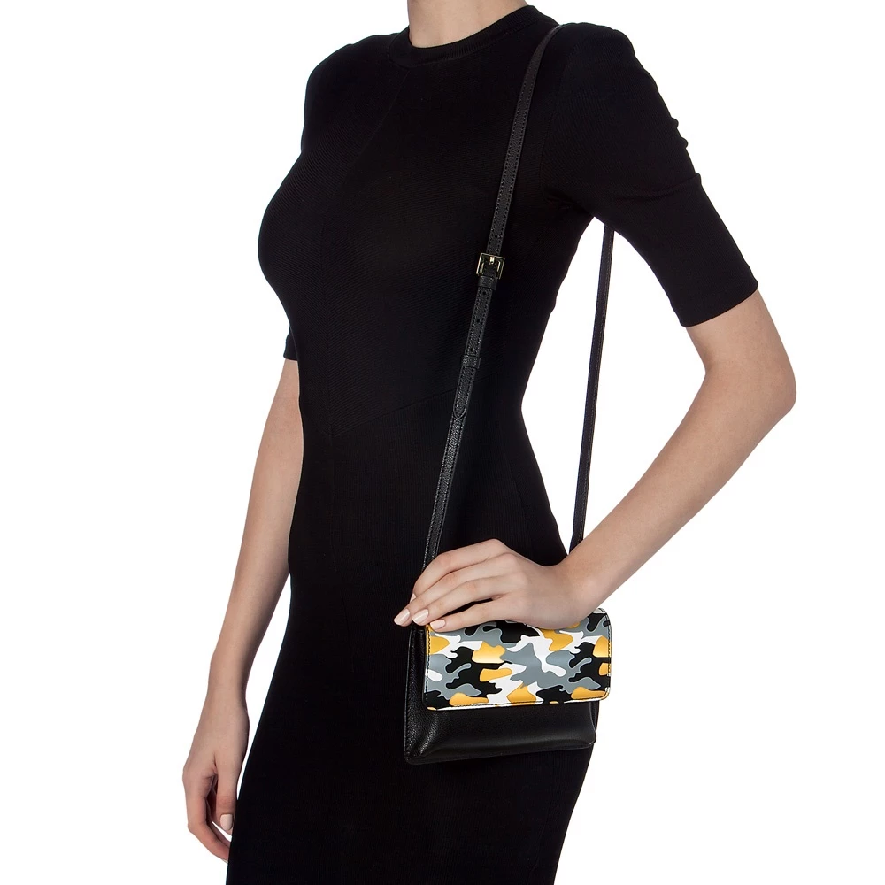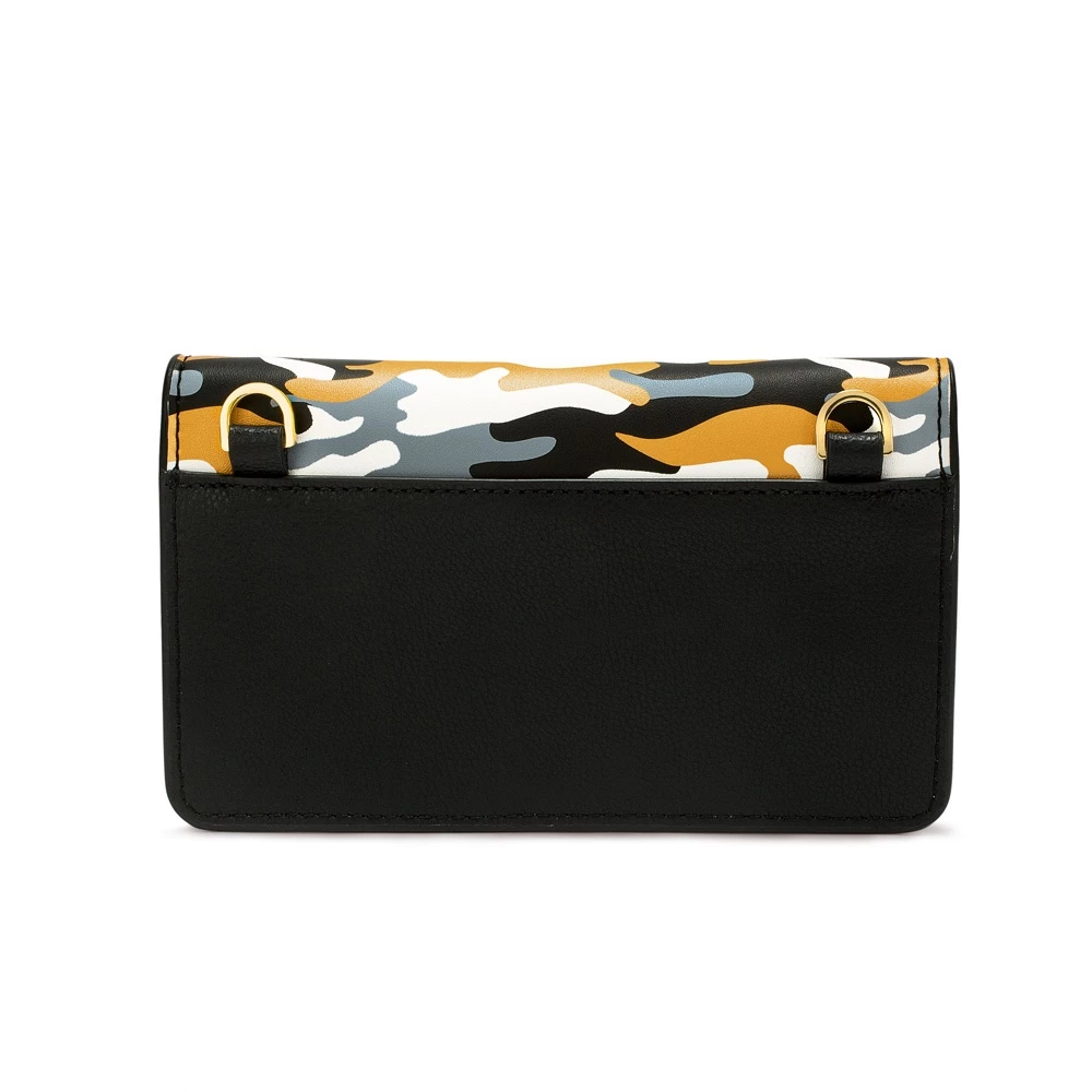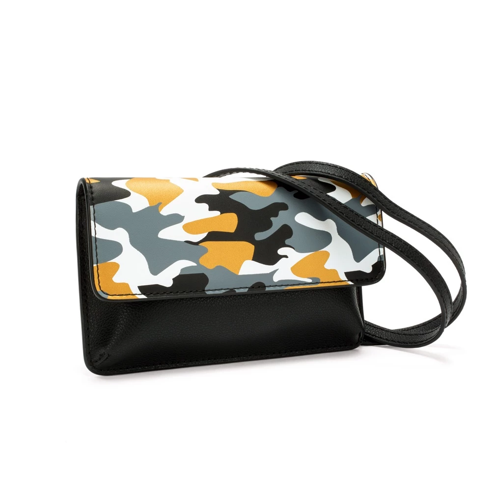 Δερμάτινη μικρού μεγέθους χιαστί τσάντα με χρυσό camouflage τύπωμα από την συλλογή Rebel Riviera. Μοντέρνα και με πολυμορφικό χαρακτήρα, μπορεί ιδανικά να κρατηθεί και σαν clutch.