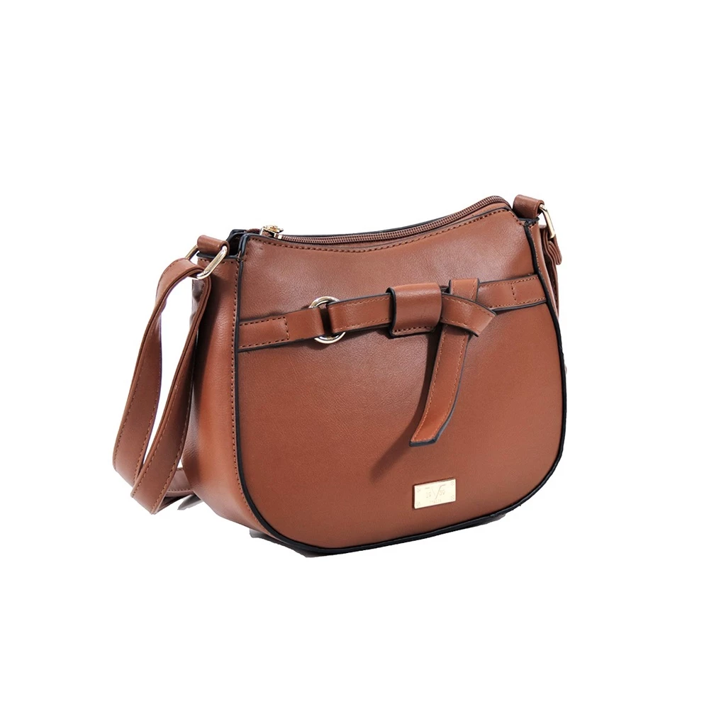 Γυναικεία τσάντα χιαστί 19V69 ITALIA από οικολογικό δέρμα με αυξομειόμενο λουράκι σε καφέ απόχρωση. Ένας χώρος εσωτερικά κλείνει με φερμουάρ. Τσέπη με φερμουάρ και θήκη για κινητό στο εσωτερικό. Εξωτερική τσέπη που κλείνει με φερμουάρ στο πίσω μέρος.