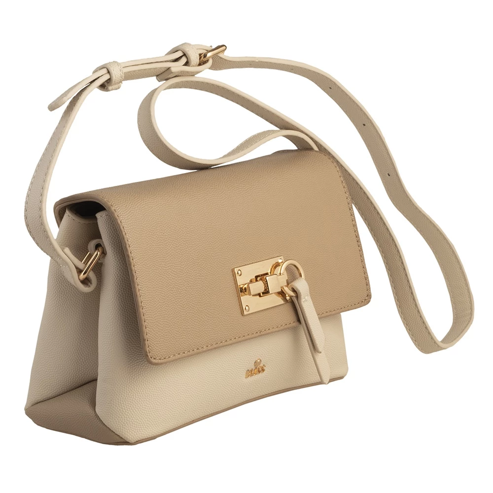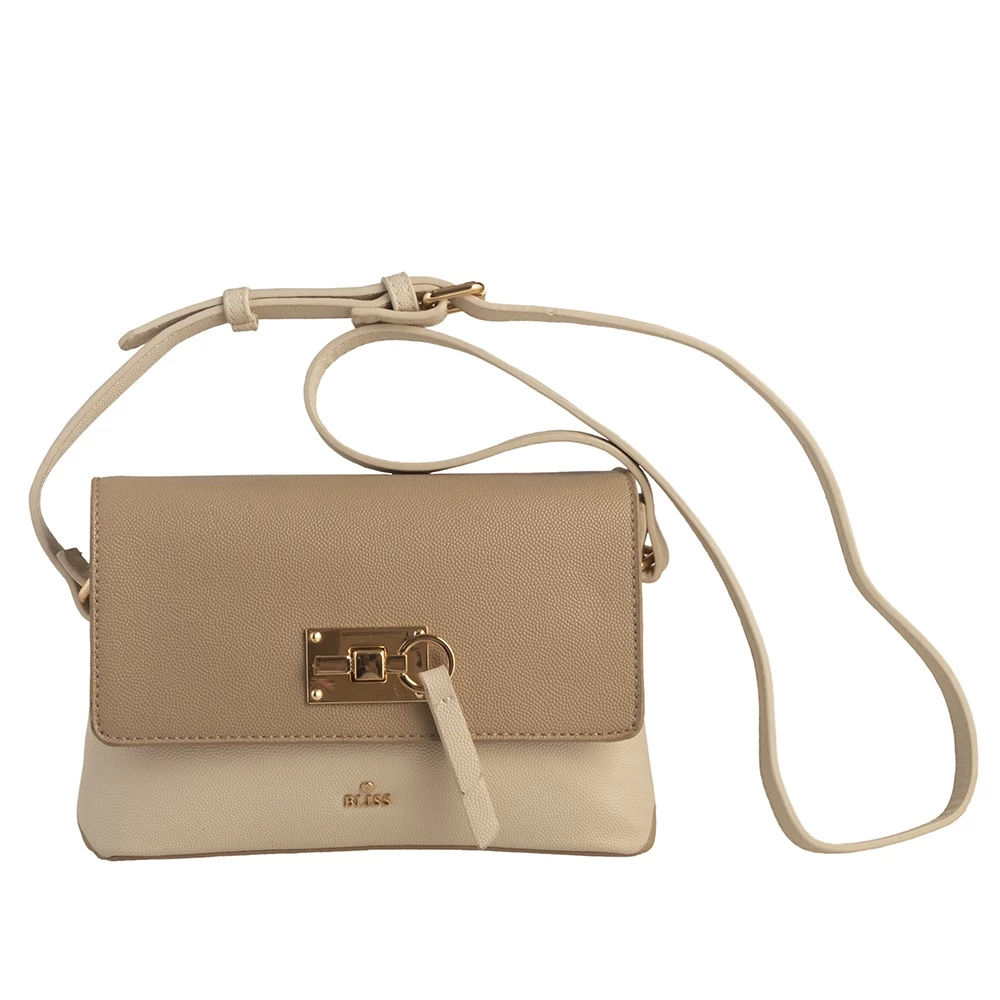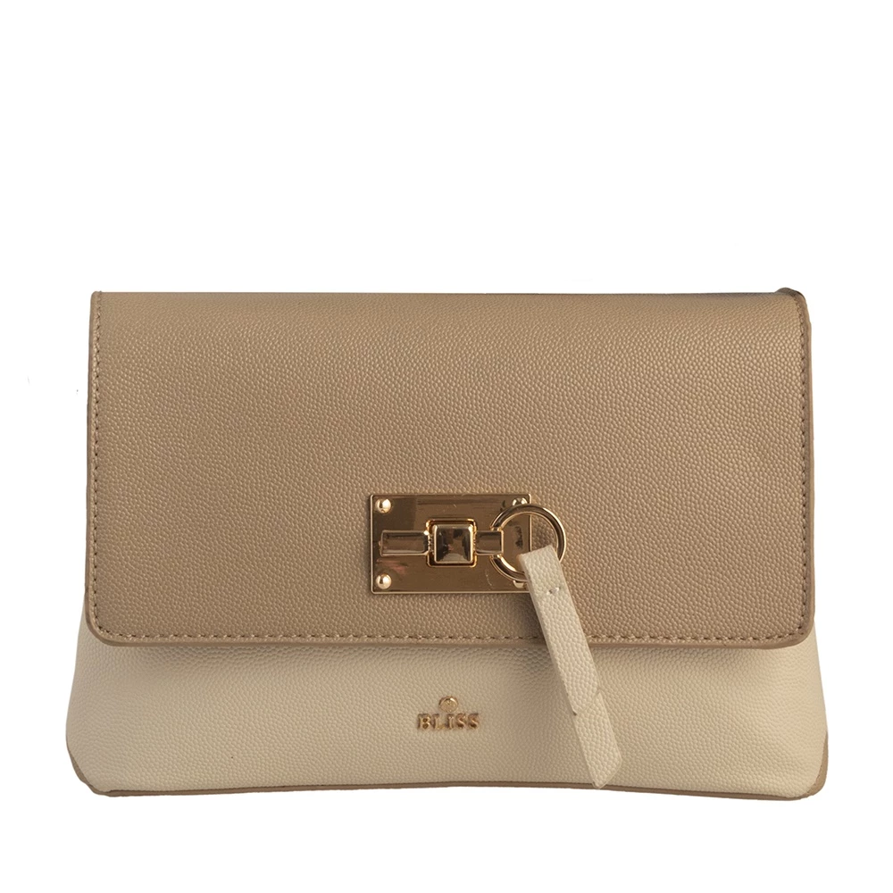 Γυναικεία τσάντα χιαστί BLISS σε εκρού απόχρωση. Από οικολογικό δέρμα, με ρυθμιζόμενο ιμάντα. Κλείνει με καπάκι και μεταλλικό κλιπ.