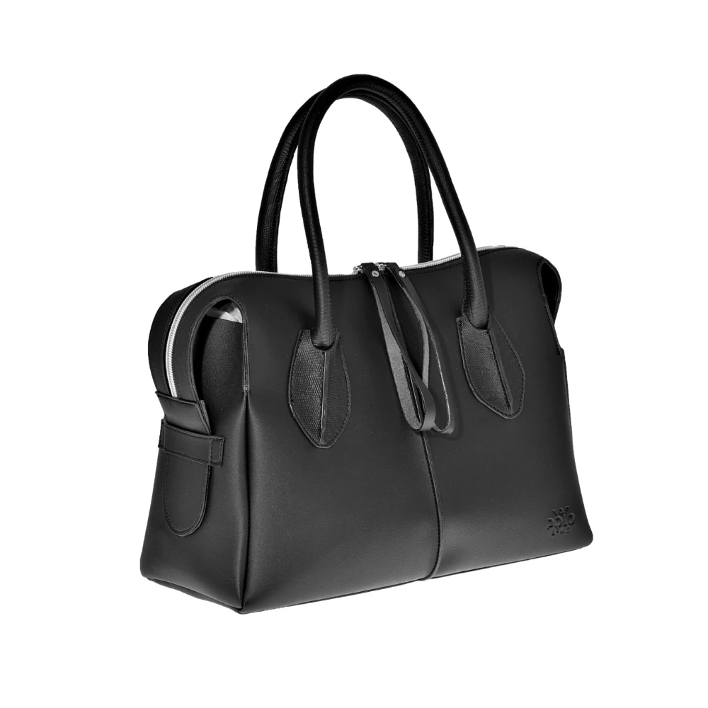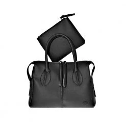 Γυναικεία τσάντα χειρός VQF POLO LINE από οικολογικό δέρμα σε μαύρο χρώμα. Κλείνει με διπλό φερμουάρ. Εσωτερικά έχει τσέπη με φερμουάρ. Διαθέτει έξτρα τσαντάκι.