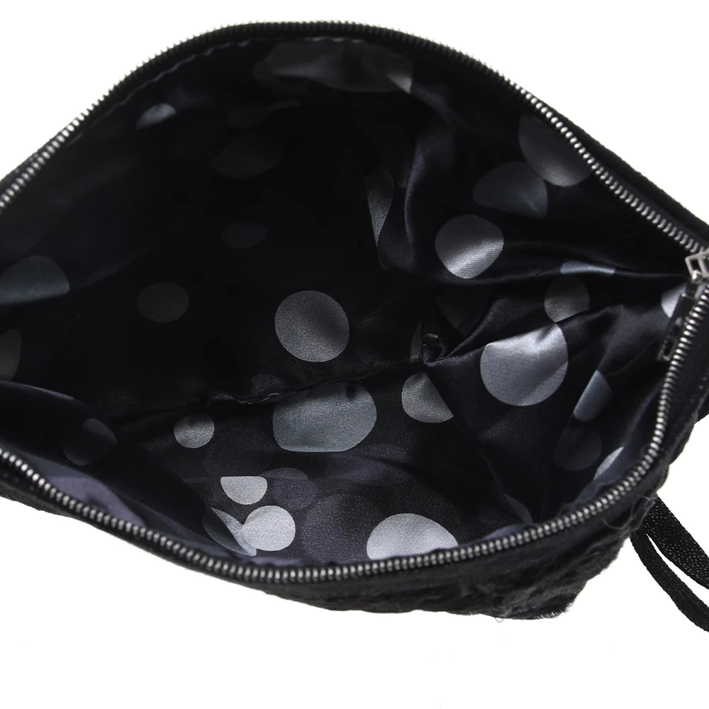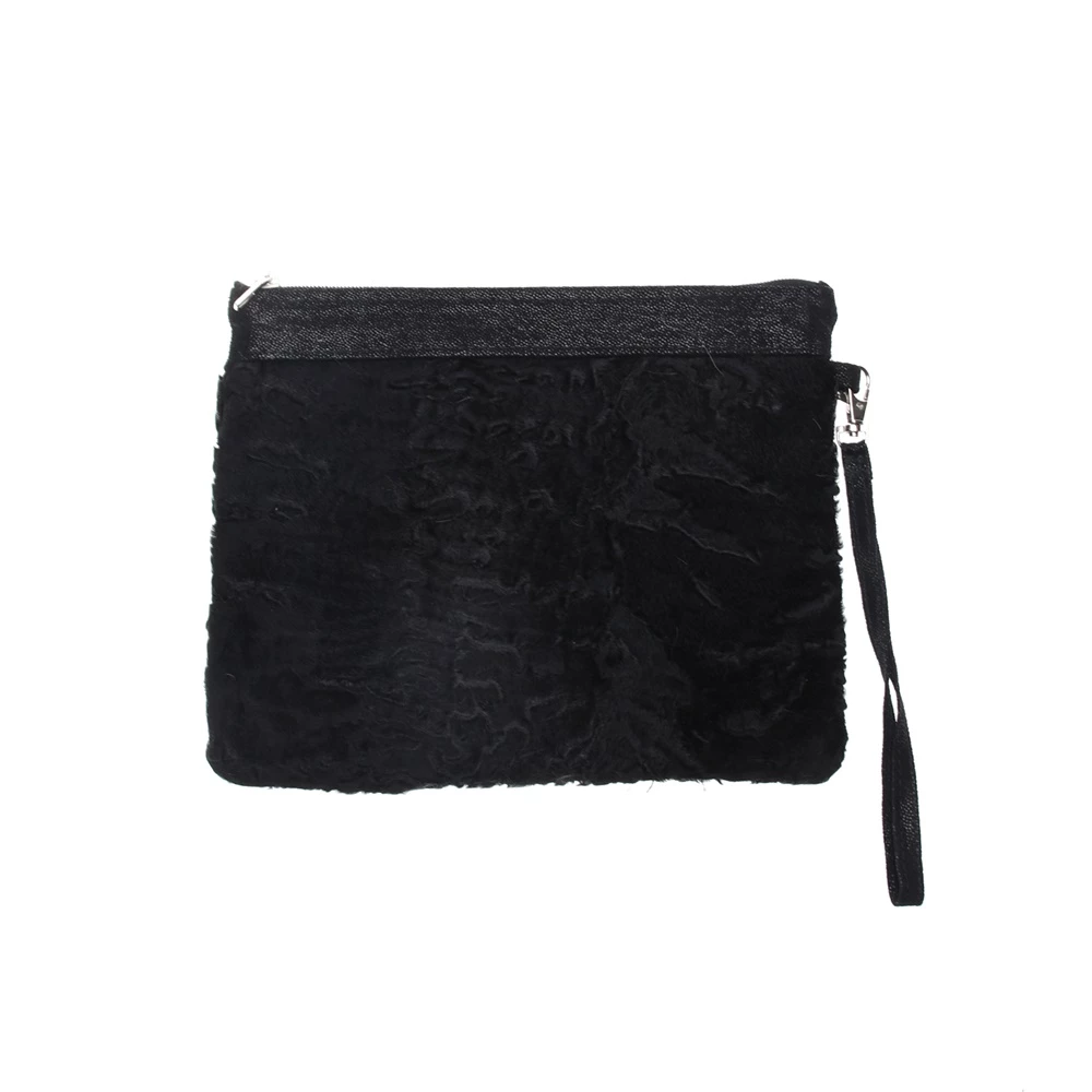 Γυναικεία τσάντα φάκελος RITSELFURS σε μαύρο χρώμα. Από δέρμα και γούνα, με αφαιρούμενη χειρολαβή στο πλάι. Κλείνει με φερμουάρ στο επάνω μέρος.