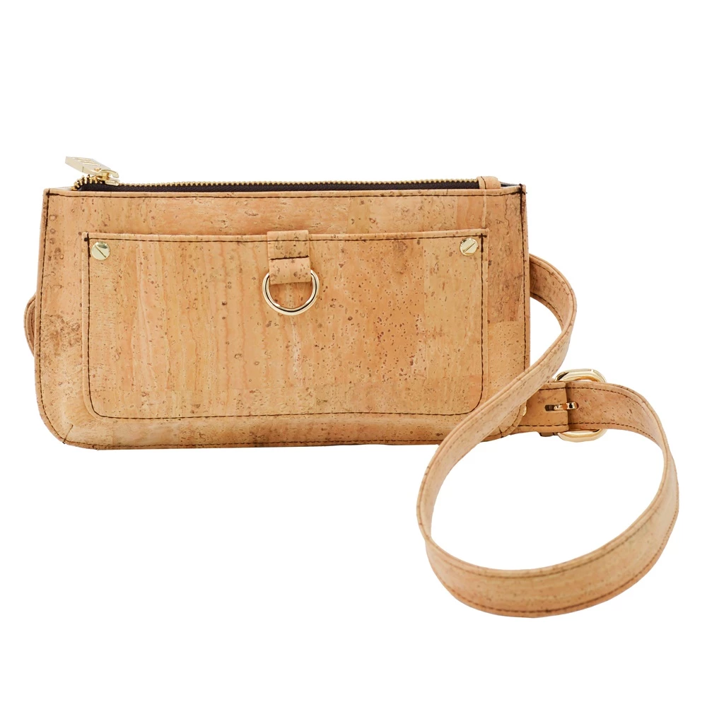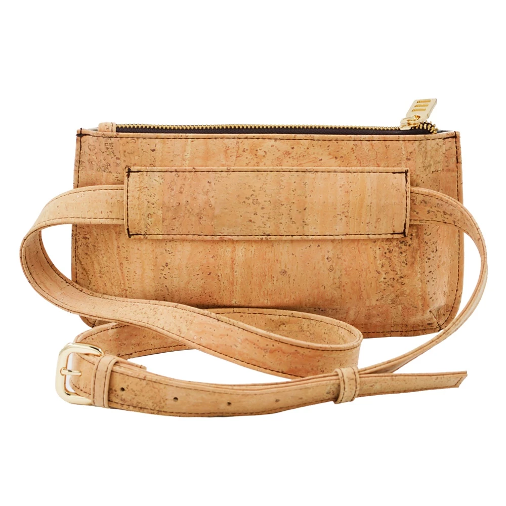 Γυναικεία τσάντα μέσης APOXYLO σε εκρού απόχρωση. Από φυσικό φελλό με επιχρυσωμένες μεταλλικές λεπτομέρειες. Εσωτερική επένδυση από φυσικό βαμβακερό ύφασμα. Διαθέτει αποσπώμενο και ρυθμιζόμενο ιμάντα για την μέση και κλείνει με φερμουάρ. Συνοδεύεται από προστατευτική θήκη Apoxylo.