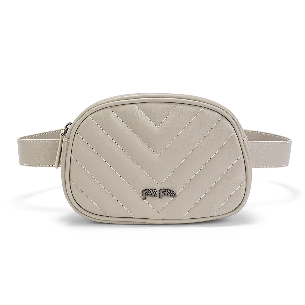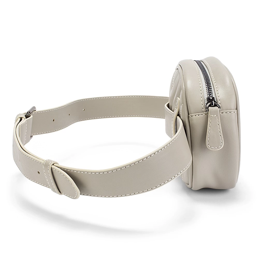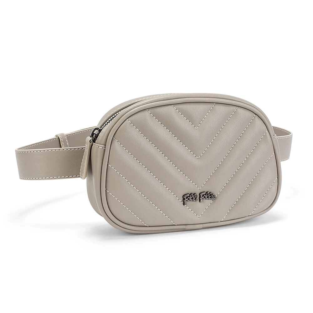 Γυναικεία τσάντα μέσης FOLLI FOLLIE από την συλλογή STYLE ROW με οβάλ σχήμα, σε γκρι απόχρωση. Από οικολογικό δέρμα με καπιτονέ όψη. Διαθέτει μία εσωτερική τσέπη με φερμουάρ. Αφαιρούμενος ρυθμιζόμενος ιμάντας – ζώνη για να την προσαρμόσετε στην μέση σας. Κλείνει με φερμουάρ. Είναι εξαιρετικά πρακτική και πολύ στιλάτη!