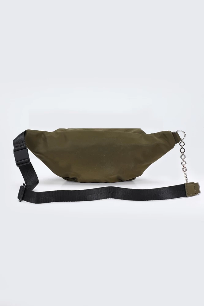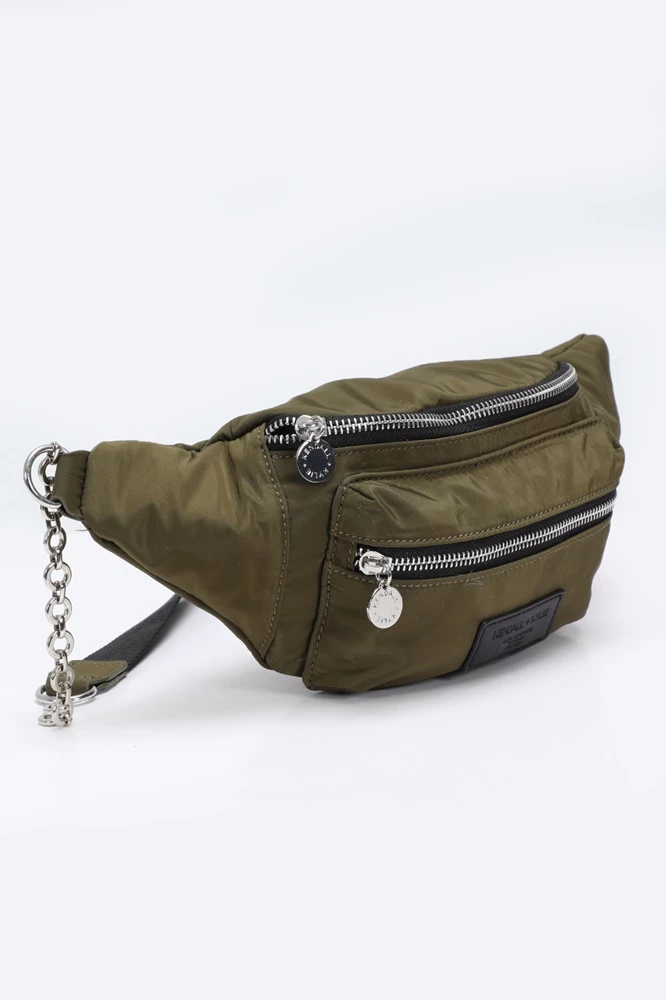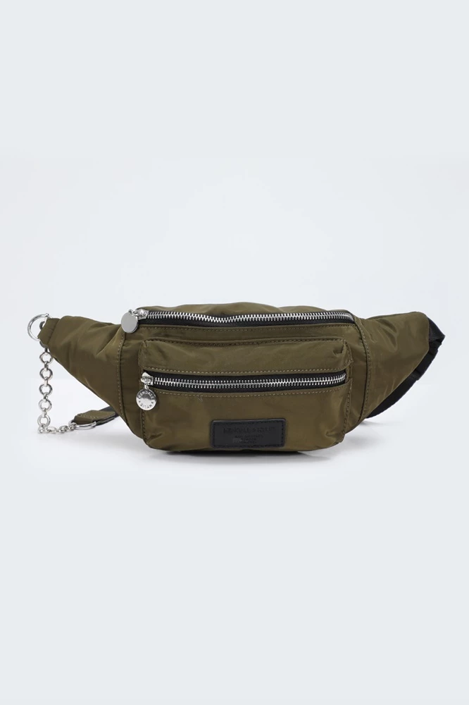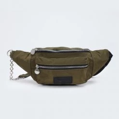 Γυναικεία τσάντα μέσης KENDALL+KYLIE CARINA FANNYPACK σε χακί απόχρωση. Από ύφασμα, με δύο θήκες που κλείνουν με φερμουάρ. Διαθέτει υφασμάτινο ρυθμιζόμενο ιμάντα μέσης, με λεπτομέρεια αλυσίδα. Ιδανική για τις καθημερινές casual εμφανίσεις σας.