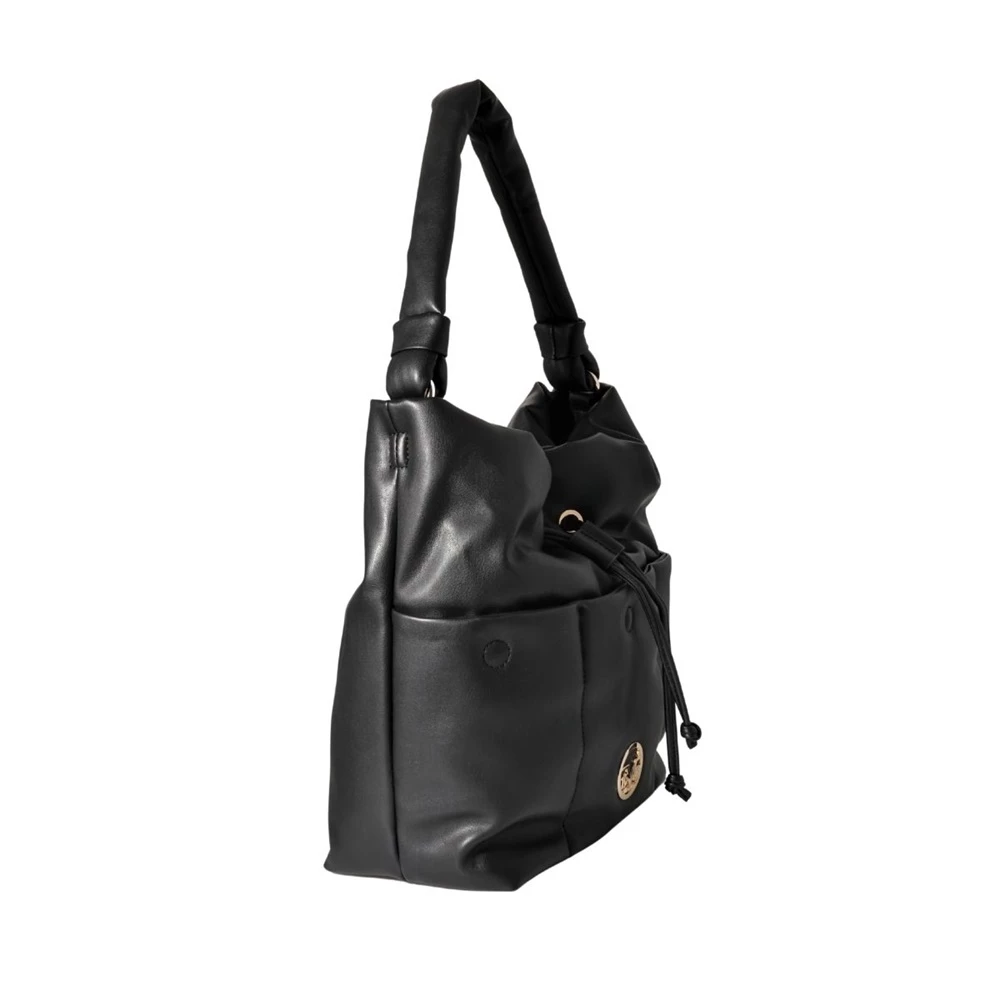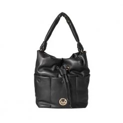 Γυναικεία τσάντα ώμου 19V69 ITALIA σε μαύρο χρώμα. Από οικολογικό δέρμα, με τρεις εξωτερικές τσέπες. Διαθέτει μία μακριά χειρολαβή στο επάνω μέρο. Κλείνει με κορδόνι και ένα κουμπί.