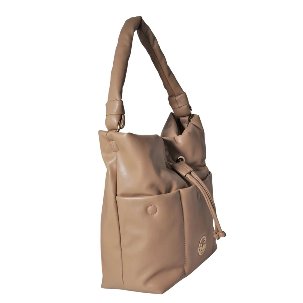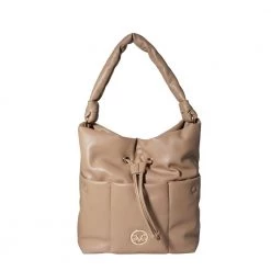 Γυναικεία τσάντα ώμου 19V69 ITALIA σε μπεζ απόχρωση. Από οικολογικό δέρμα, με τρεις εξωτερικές τσέπες. Διαθέτει μία μακριά χειρολαβή στο επάνω μέρο. Κλείνει με κορδόνι και ένα κουμπί.