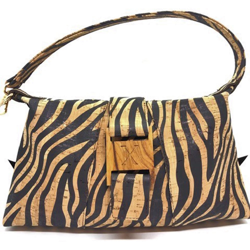 Γυναικεία τσάντα ώμου APOXYLO σε μαύρη και εκρού απόχρωση με animal print μοτίβο. Κατασκευασμένη από φυσικό φελλό με χειροποίητο logo από φυσικό ξύλο ελιάς. Εσωτερική επένδυση με φυσικό βαμβακερό ύφασμα. Διαθέτει μία χειρολαβή στο επάνω μέρος και κλείνει με φερμουάρ. Συνοδεύεται από προστατευτική θήκη Apoxylo.