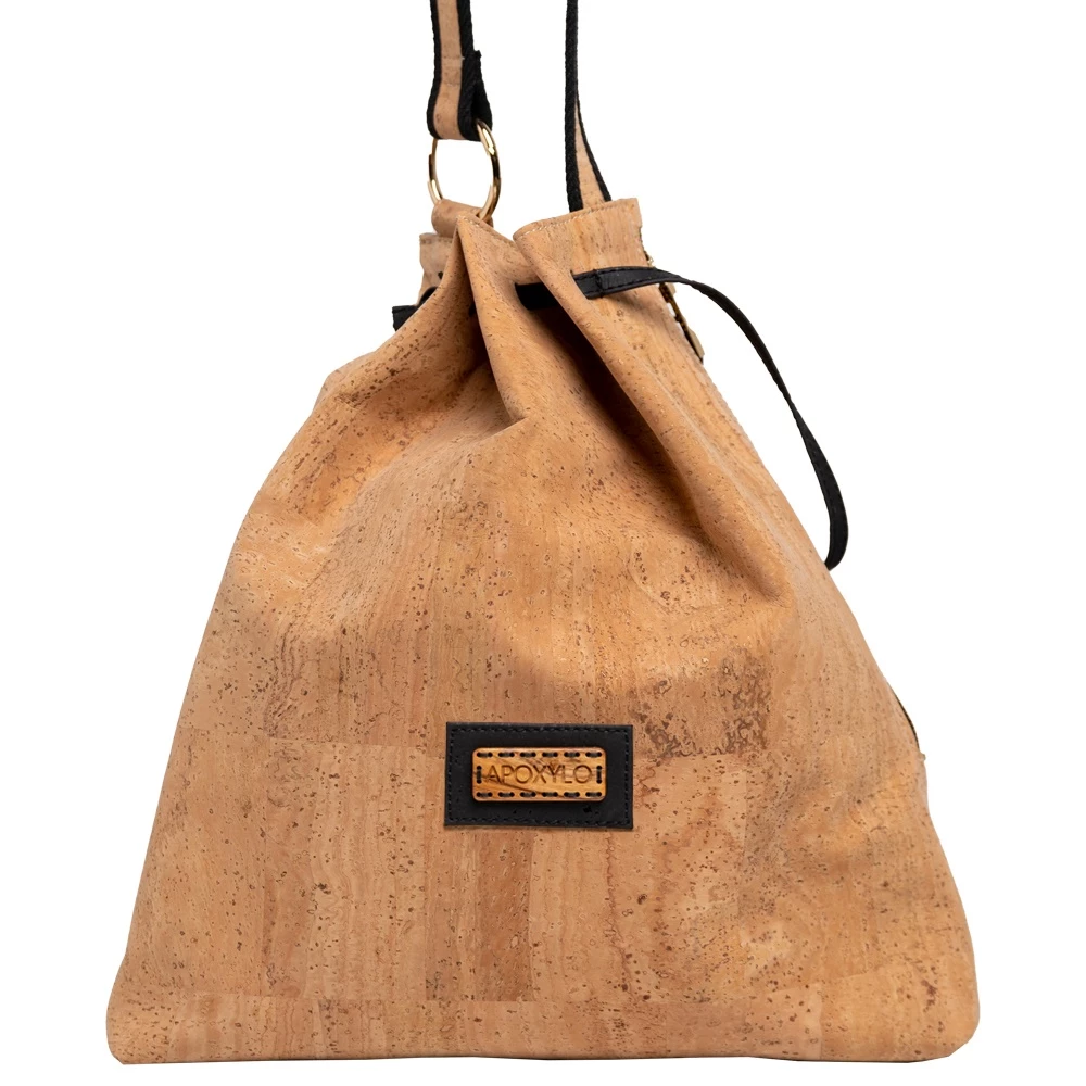 Γυναικεία τσάντα ώμου APOXYLO σε εκρού απόχρωση. Κατασκευασμένη από φυσικό φελλό με χειροποίητο logo από φυσικό ξύλο ελιάς. Εσωτερική επένδυση με φυσικό βαμβακερό ύφασμα. Διαθέτει φαρδύ ιμάντα για τον ώμο και κλείνει με φερμουάρ. Συνοδεύεται από προστατευτική θήκη Apoxylo.