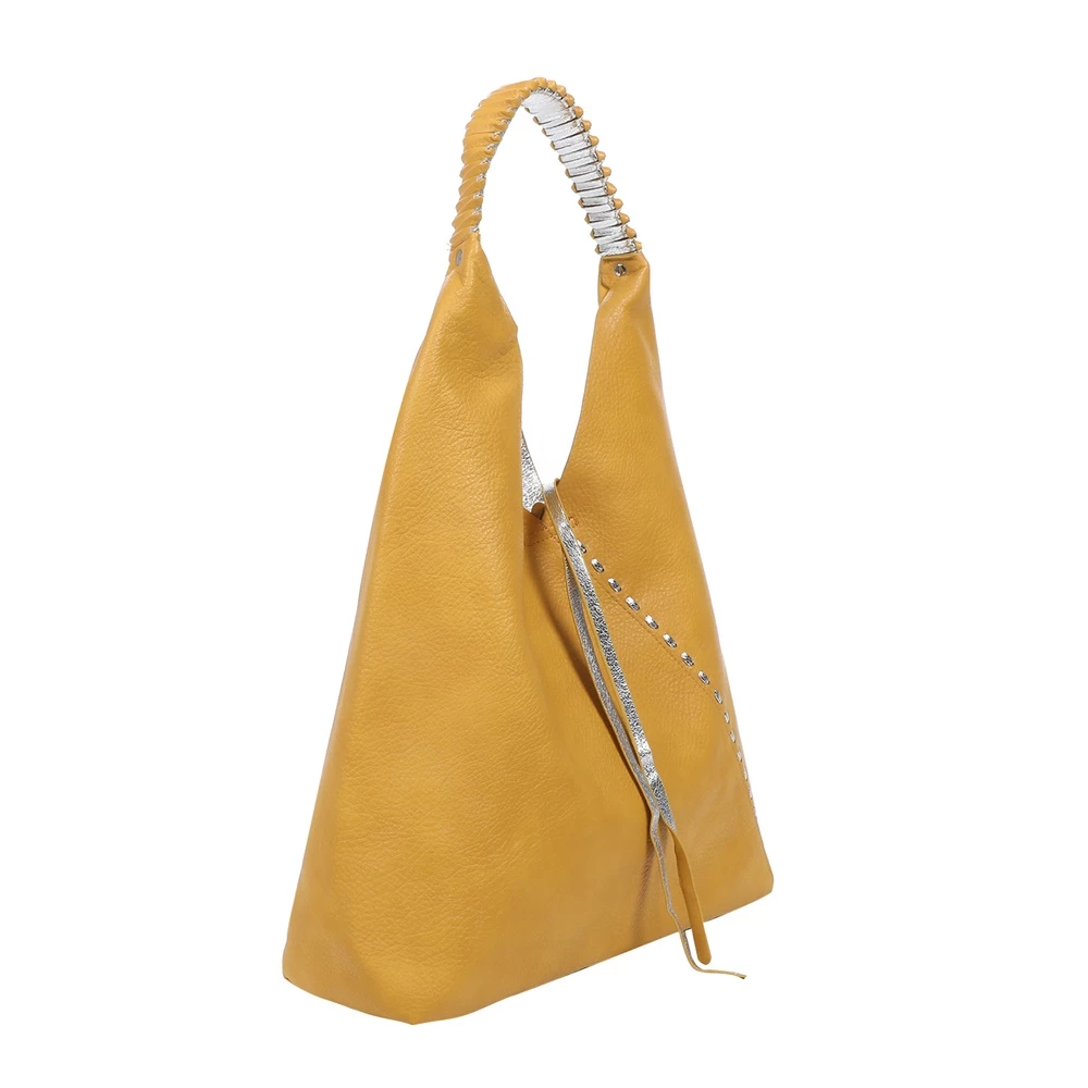 Γυναικεία μαλακή τσάντα ώμου hobo FOLLI FOLLIE σε μεσαίο μέγεθος. Με κρεμαστό μπροστινό λουράκι και ασημί μεταλλικές λεπτομέρειες από τη συλλογή City.