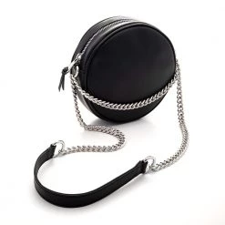 Γυναικεία τσάντα ώμου FOLLI FOLLIE από την συλλογή LOVE ‘N ROLL σε μαύρο χρώμα. Από λείο δέρμα, με στρογγυλό σχήμα. Μακριά μεταλλική αλυσίδα με δερμάτινο ιμάντα στο επάνω μέρος, για άνεση και καλύτερη εφαρμογή στον ώμο. Μπορεί να φορεθεί και χιαστί. Ιδανική για όλες τις ώρες τις ημέρας.