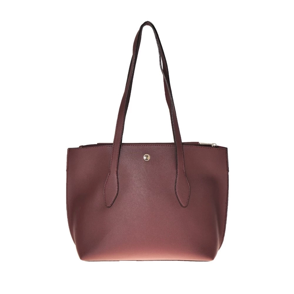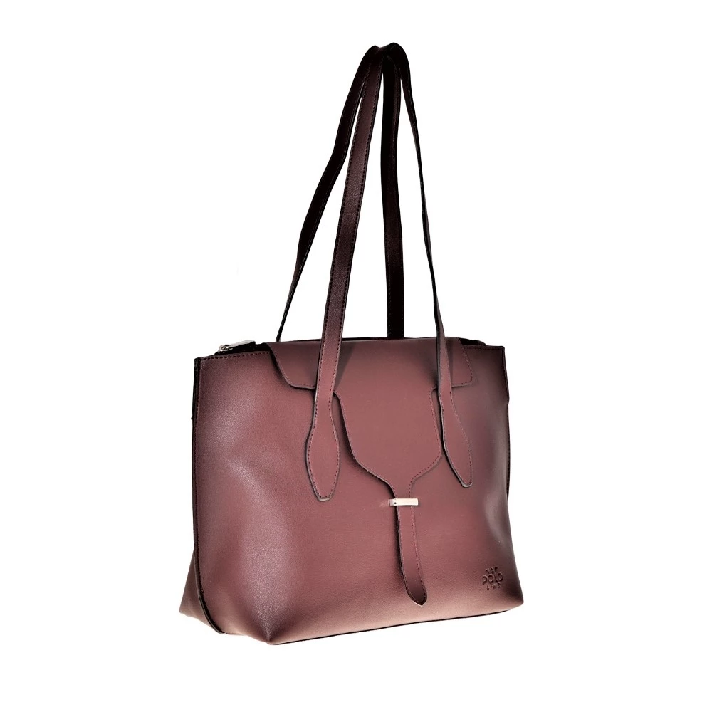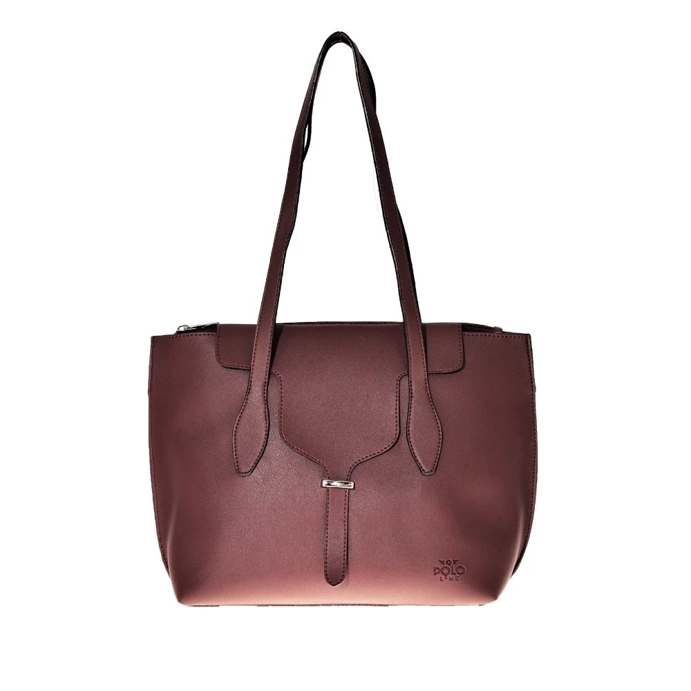 Γυναικεία τσάντα ώμου VQF POLO LINE σε μπορντό απόχρωση. Από οικολογικά δέρμα, με δύο μακριές χειρολαβές στο επάνω μέρος. Δύο κυρίως τμήματα που κλείνουν με φερμουάρ. Ενα επιπλέον τμήμα που κλείνει με κουμπάκι.