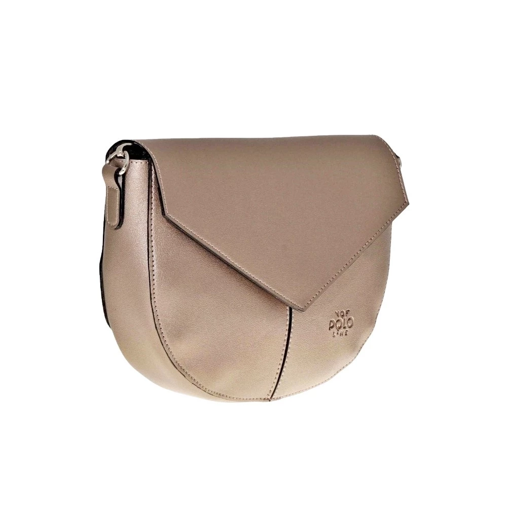 Γυναικεία τσάντα ώμου VQF POLO LINE σε ασημί γκρι απόχρωση. Από οικολογικό δέρμα, με ρυθμιζόμενο ιμάντα. Διαθέτει μία θήκη με φερμουάρ στο εσωτερικό και κλείνει με καπάκι και κουμπί μπροστά.