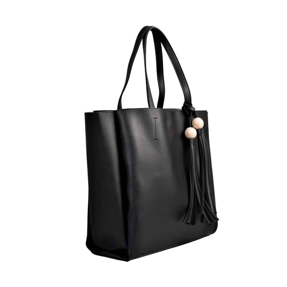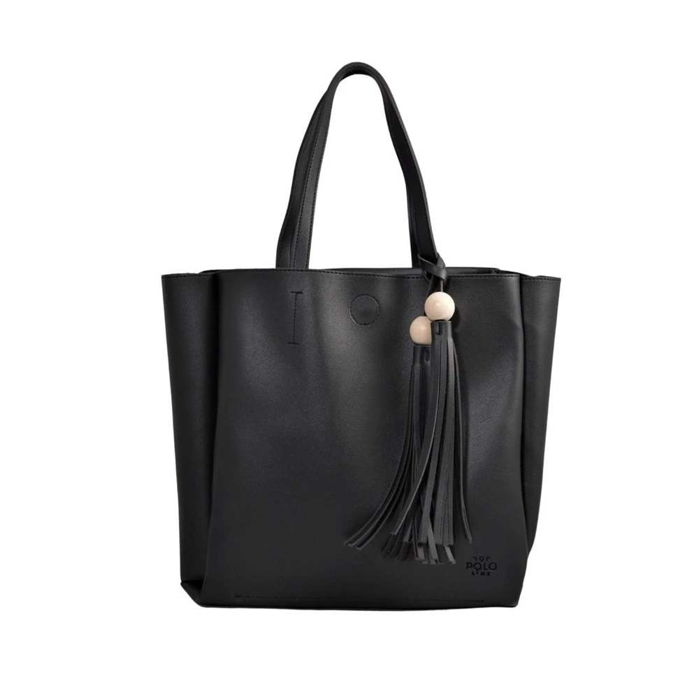 Γυναικεία τσάντα ώμου VQF POLO LINE σε μαύρο χρώμα. Από οικολογικό δέρμα υψηλής αντοχής, με διακοσμητικά κρόσσια μπροστά. Διαθέτει τρεις ανεξάρτητους χώρους. Ο κεντρικός χώρος κλείνει επάνω με φερμουάρ και οι δύο βοηθητικοί με μαγνητικά clips.