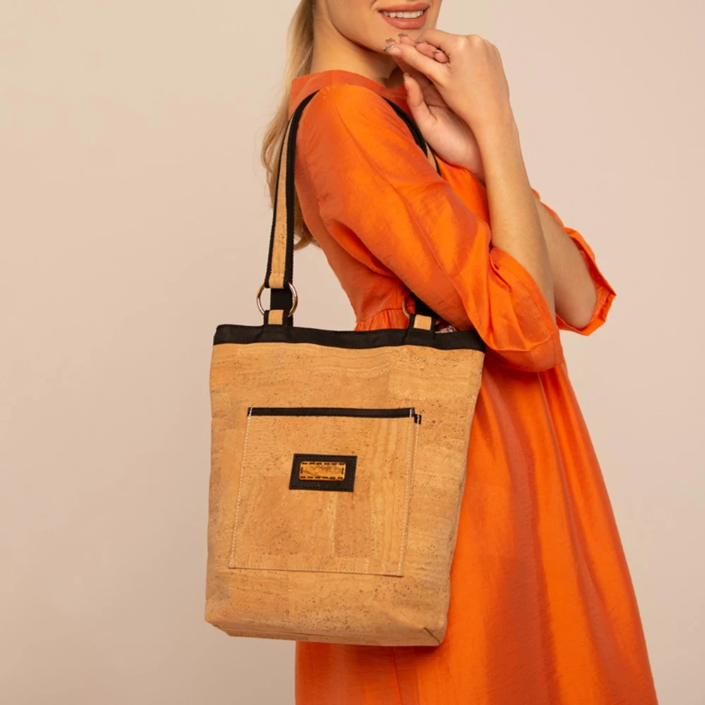 Γυναικεία τσάντα shopper APOXYLO από φυσικό φελλό με χειροποίητο logo από φυσικό ξύλο ελιάς. Eσωτερική επένδυση από φυσικό βαμβακερό ύφασμα. Διαθέτει ιμάντες για τον ώμο από φελλό και κλείνει με φερμουάρ. Συνοδεύεται από προστατευτική θήκη Apoxylo.
