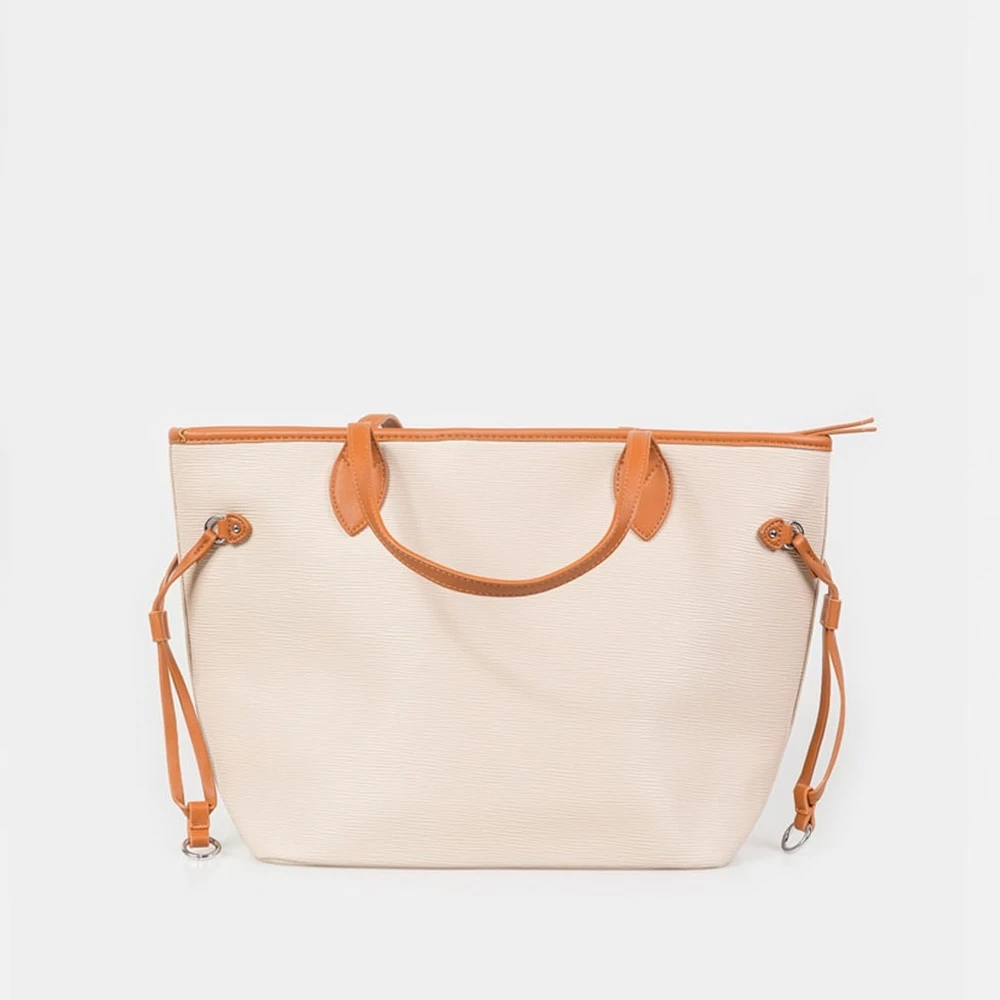 Γυναικεία τσάντα shopper DA VINCI σε μπεζ απόχρωση. Από συνθετικό δέρμα, με υφασμάτινη επένδυση. Διαθέτει μακριές χειρολαβές και κλείνει με φερμουάρ στο επάνω μέρος.