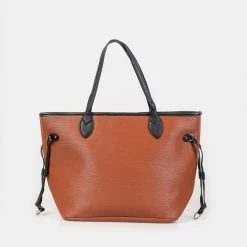Γυναικεία τσάντα shopper DA VINCI σε καφέ πορτοκαλί απόχρωση. Από συνθετικό δέρμα, με υφασμάτινη απένδυση. Διαθέτει μακριές χειρολαβές και κλείνει με φερμουάρ στο επάνω μέρος.