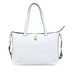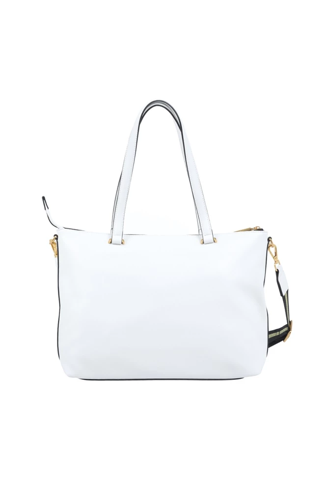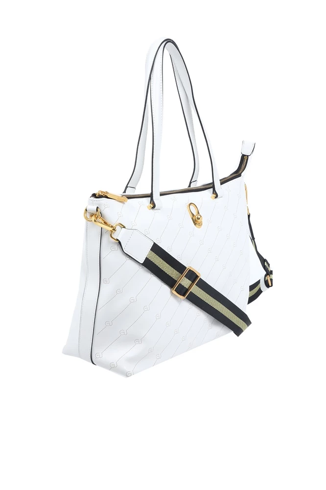 Γυναικεία τσάντα shopping GAUDI σε άσπρο χρώμα. Από συνθετικό δέρμα, με μακριές χειρολαβές και αφαιρούμενο υφασμάτινο ιμάντα. Κλείνει με φερμουάρ στο επάνω μέρος.