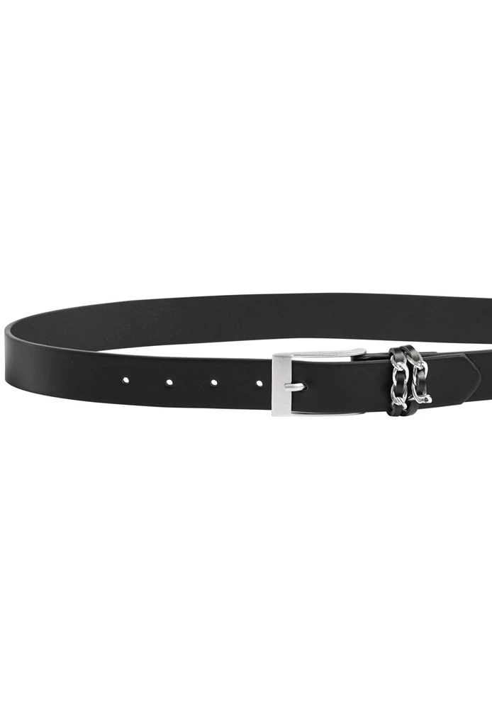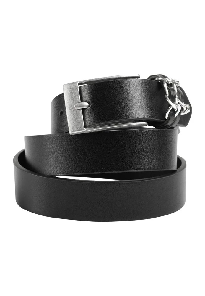 Γυναικεία ζώνη FUNKY BUDDHA σε μαύρο χρώμα. Από συνθετικό δέρμα, με ασημί μεταλλική αγκράφα και λεπτομέρειες από αλυσίδα.