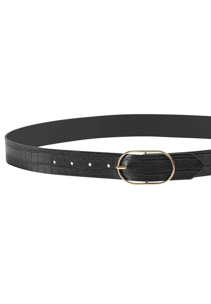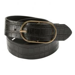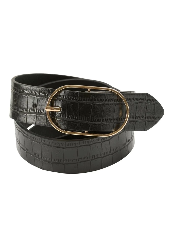 Γυναικεία ζώνη FUNKY BUDDHA σε μαύρο χρώμα, με croco μοτίβο. Από συνθετικό δέρμα, με μεταλλική χρυσή oval αγκράφα.
