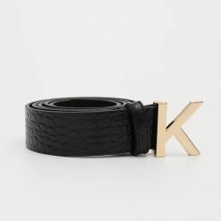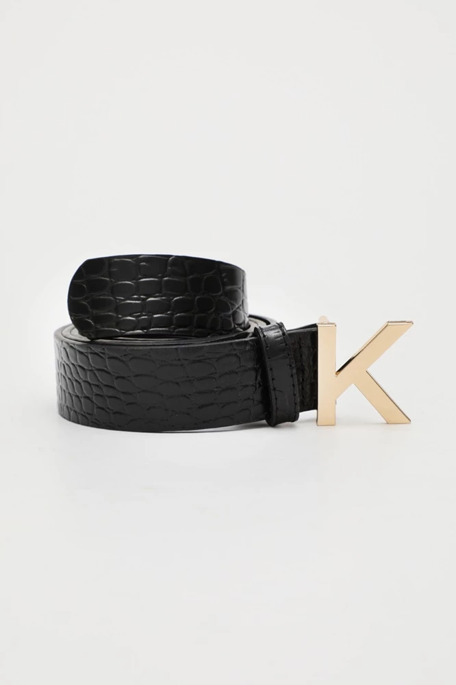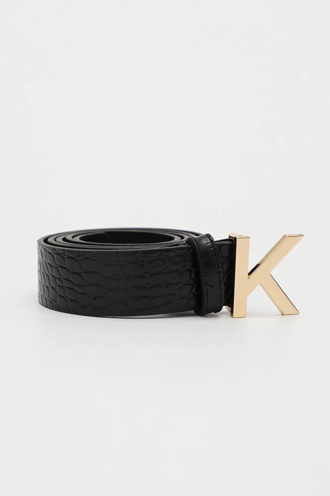 Γυναικεία ζώνη KENDALL+KYLIE σε μαύρο χρώμα. Από ανάγλυφο δέρμα, με χρυσή μεταλλική αγκράφα Κ.