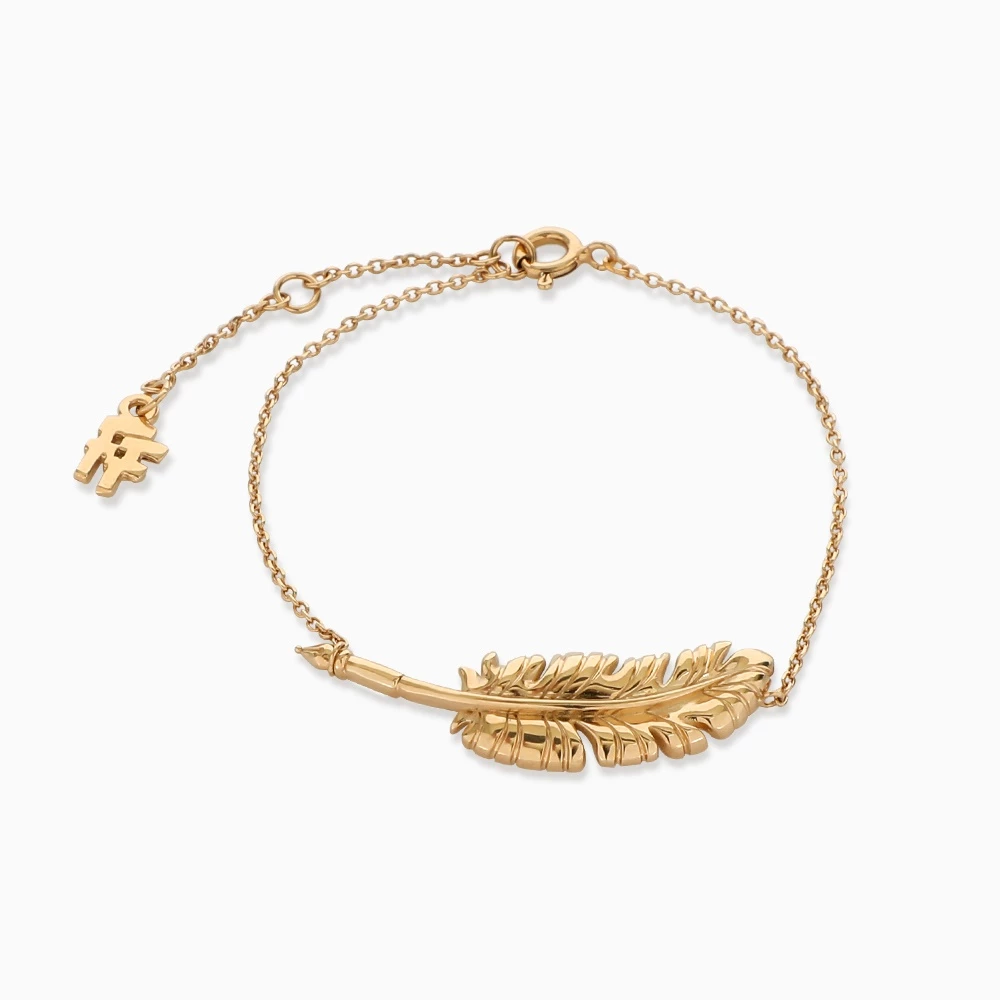 Γυναικείο ασημένιο 925° βραχιόλι FOLLI FOLLIE με 18K κίτρινη επιχρύσωση από την επετειακή συλλογή Historia. Εμπνευσμένο από την 200ή επέτειο από την απελευθέρωσης της Ελλάδας, το μοτίφ πένα συμβολίζει την καταλυτική σημασία που έχει η δύναμη ψυχής στο να γραφτεί η Ιστορία.