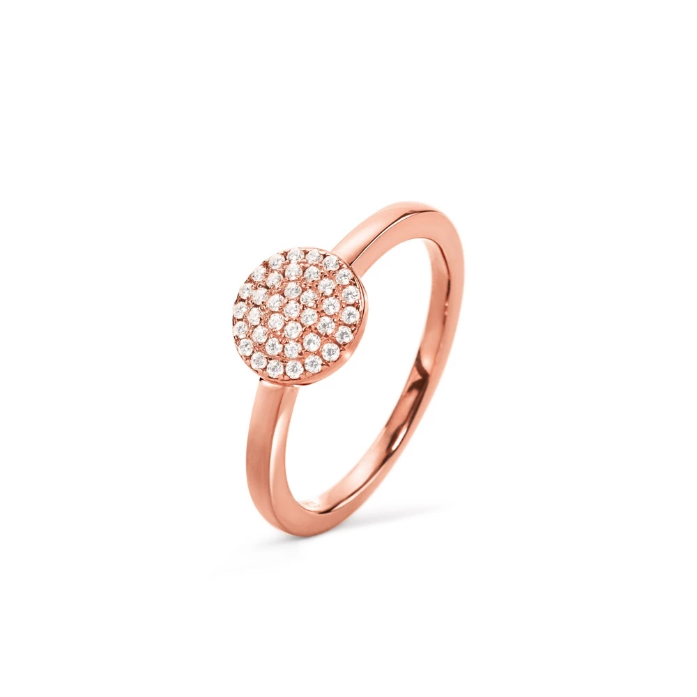 Γυναικείο δαχτυλίδι FOLLI FOLLIE DISCUS από ροζ χρυσό επιμεταλλωμένο ασήμι 925°. Λεπτή βέρα με μικρό μοτίφ σε σχήμα δίσκου διακοσμημένο με πέτρες ζιργκόν. Ένα κομψό κόσμημα που θα δώσει διακριτική λάμψη σε κάθε σας σύνολο.