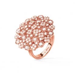 Γυναικείο δαχτυλίδι FOLLI FOLLIE FF BOUQUET από ροζ χρυσό επιμεταλλωμένο ασήμι 925°. Λεπτή βέρα με μεγάλο μοτίφ σε σχήμα μπουκέτου λουλουδιών διακοσμημένα με πέτρες ζιργκόν. Ένα εντυπωσιακό και κομψό κόσμημα που θα δώσει διακριτική λάμψη σε κάθε σας σύνολο.