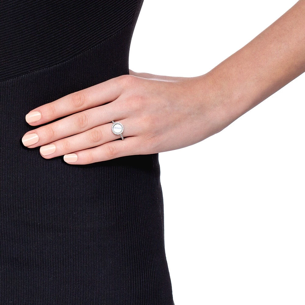 Γυναικείο δαχτυλίδι FOLLI FOLLIE της συλλογής Heart4Heart Mirrors από ασήμι 925. Λεπτή βέρα, με motif πέτρα από φίλντισι και το χαρακτηριστικό τετράφυλλο της συλλογής, διακοσμημένο από λευκές πέτρες ζιργκόν. Φορέστε το και από τις δύο πλευρές, σαν δύο διαφορετικά δαχτυλίδια, για μοναδικές εμφανίσεις!