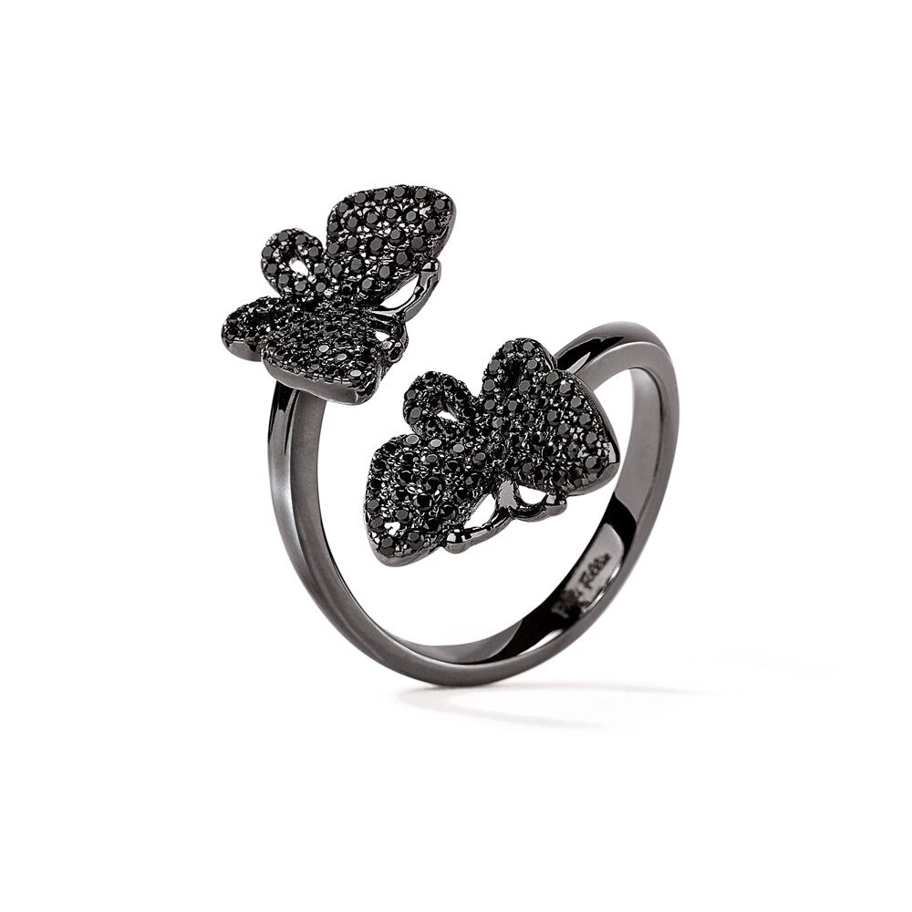 Γυναικείο δαχτυλίδι FOLLI FOLLIE της συλλογής Wonderfly από ασήμι 925 με μαύρη επιμετάλλωση. Λεπτή βέρα με motif δύο μικρές πεταλούδες στις άκρες, διακοσμημένες με μαύρες κρυστάλλινες πέτρες. Έχει άνοιγμα, για να το προσαρμόσεις εύκολα σε διαφορετικές θέσεις και δάχτυλα ανάλογα με το σύνολο και την διάθεσή σου!