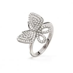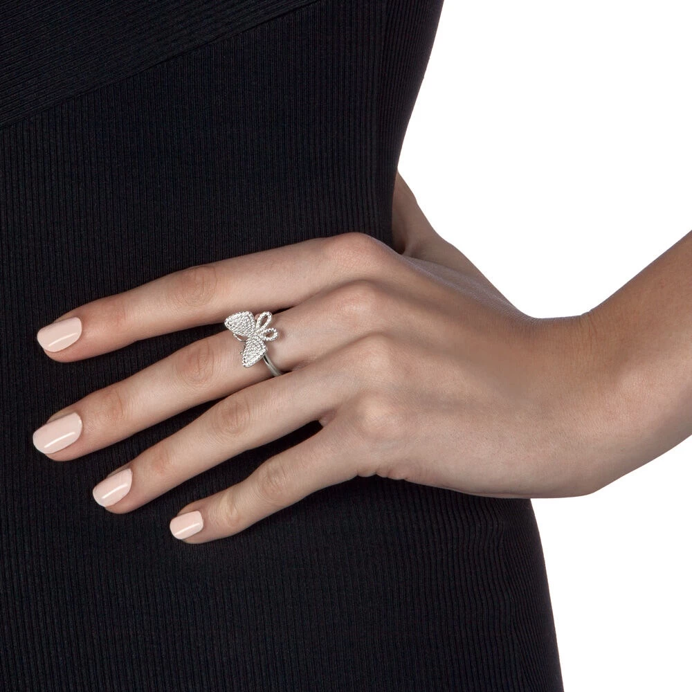 Γυναικείο δαχτυλίδι FOLLI FOLLIE της συλλογής Wonderfly Silver από ασήμι 925. Εντυπωσιακό motif πεταλούδα με λευκές κρυστάλλινες πέτρες, σε λεπτή βέρα. Μπορεί να φορεθεί και σας chevalier και εμπνεύσει όλα σου τα σύνολα.