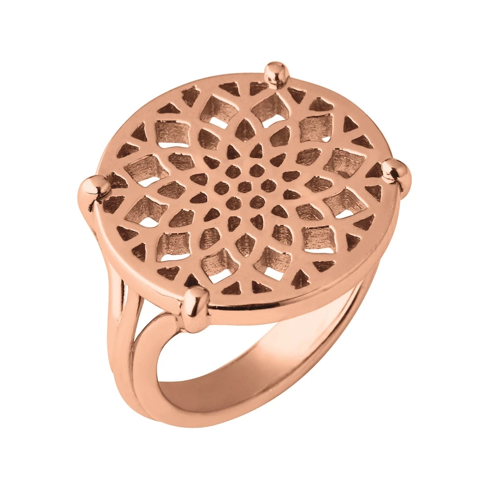 Γυναικείο ασημένιο δαχτυλίδι LINKS OF LONDON με ροζ επιχρύσωση 18Κ από την συλλογή TIMELESS COIN. Ένα πολύ όμορφο και ξεχωριστό δαχτυλίδι, με τρεις βέρες και μεγάλο flat μοτίφ εμπνευσμένο από το καντράν του Big Ben.